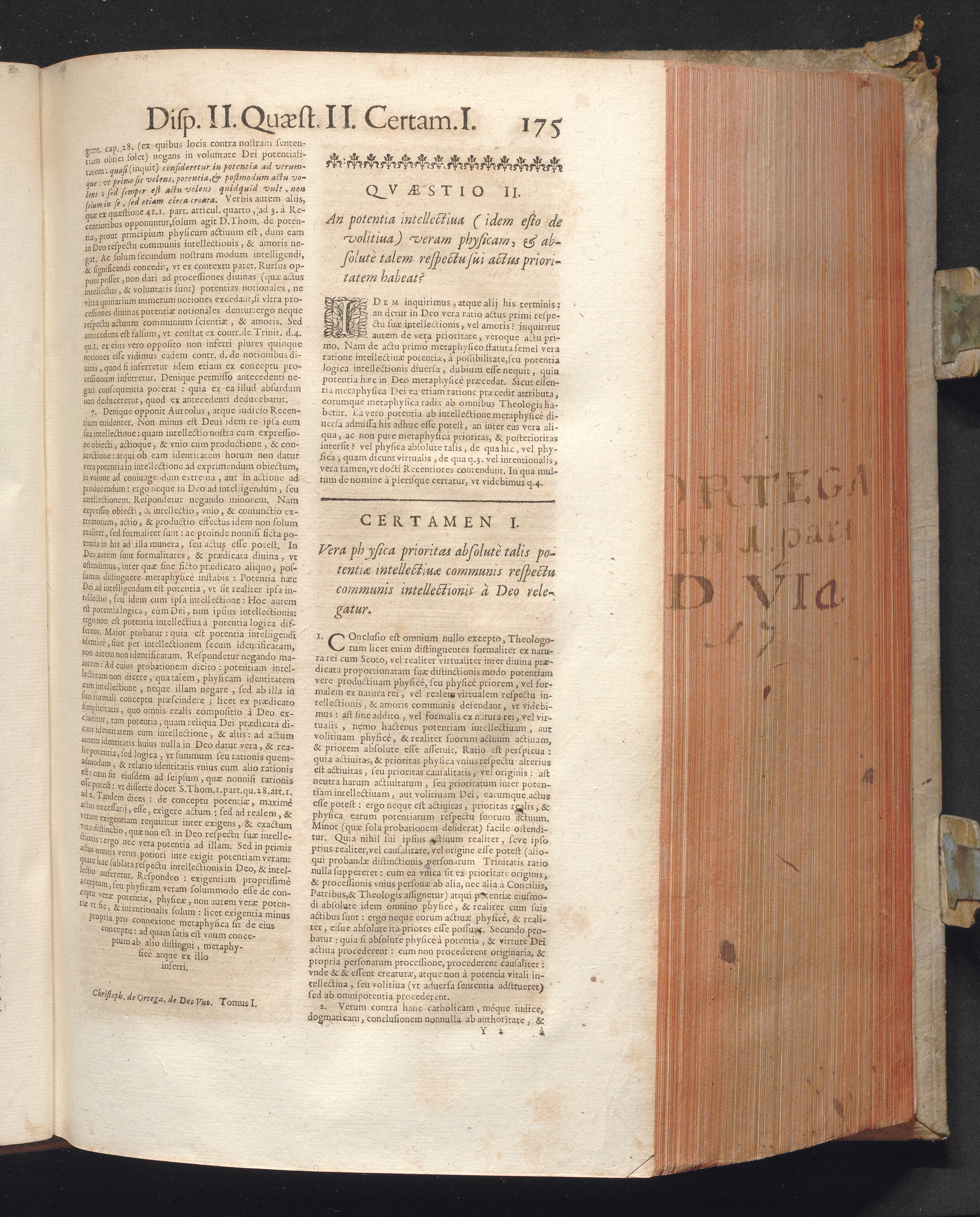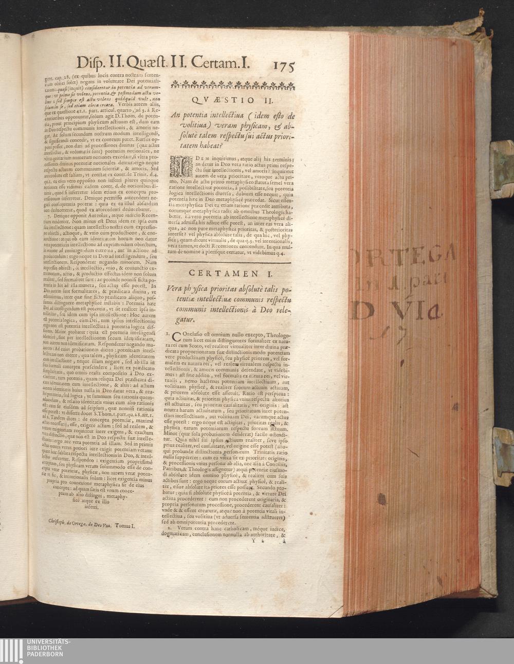 1 (1680) R. P. Christophori De Ortega È Societate Iesu, Quondam Scolasticæ Theologiæ publici Professoris, ac ejusdem Facultatis Præfecti ... Theologia Controversiarum Dogmaticarum, & Scholasticarum, de Divina Essentia, Attributis non vitalibus, de Scientia, & de Decreto concurrendi cum causis liberis