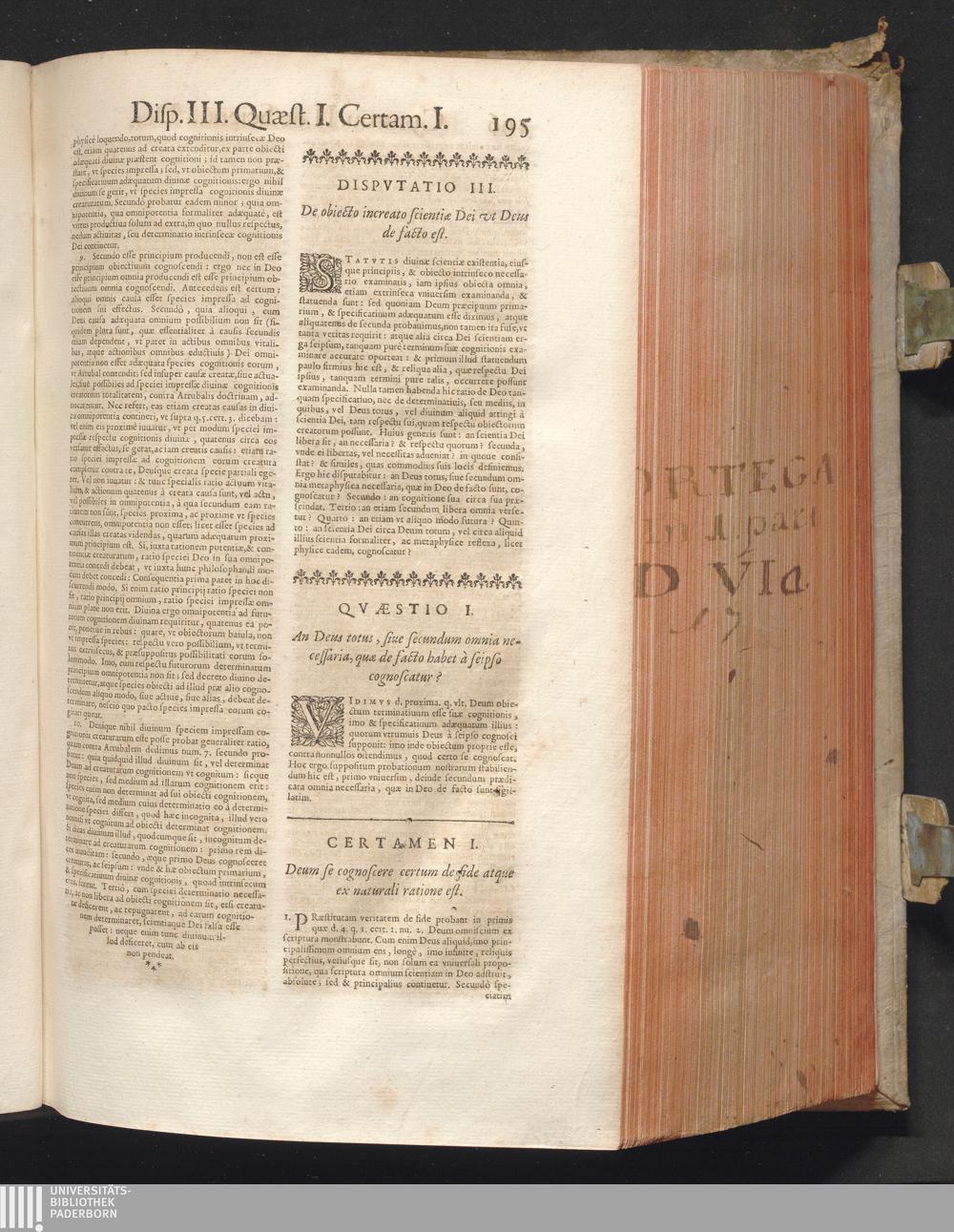 1 (1680) R. P. Christophori De Ortega È Societate Iesu, Quondam Scolasticæ Theologiæ publici Professoris, ac ejusdem Facultatis Præfecti ... Theologia Controversiarum Dogmaticarum, & Scholasticarum, de Divina Essentia, Attributis non vitalibus, de Scientia, & de Decreto concurrendi cum causis liberis