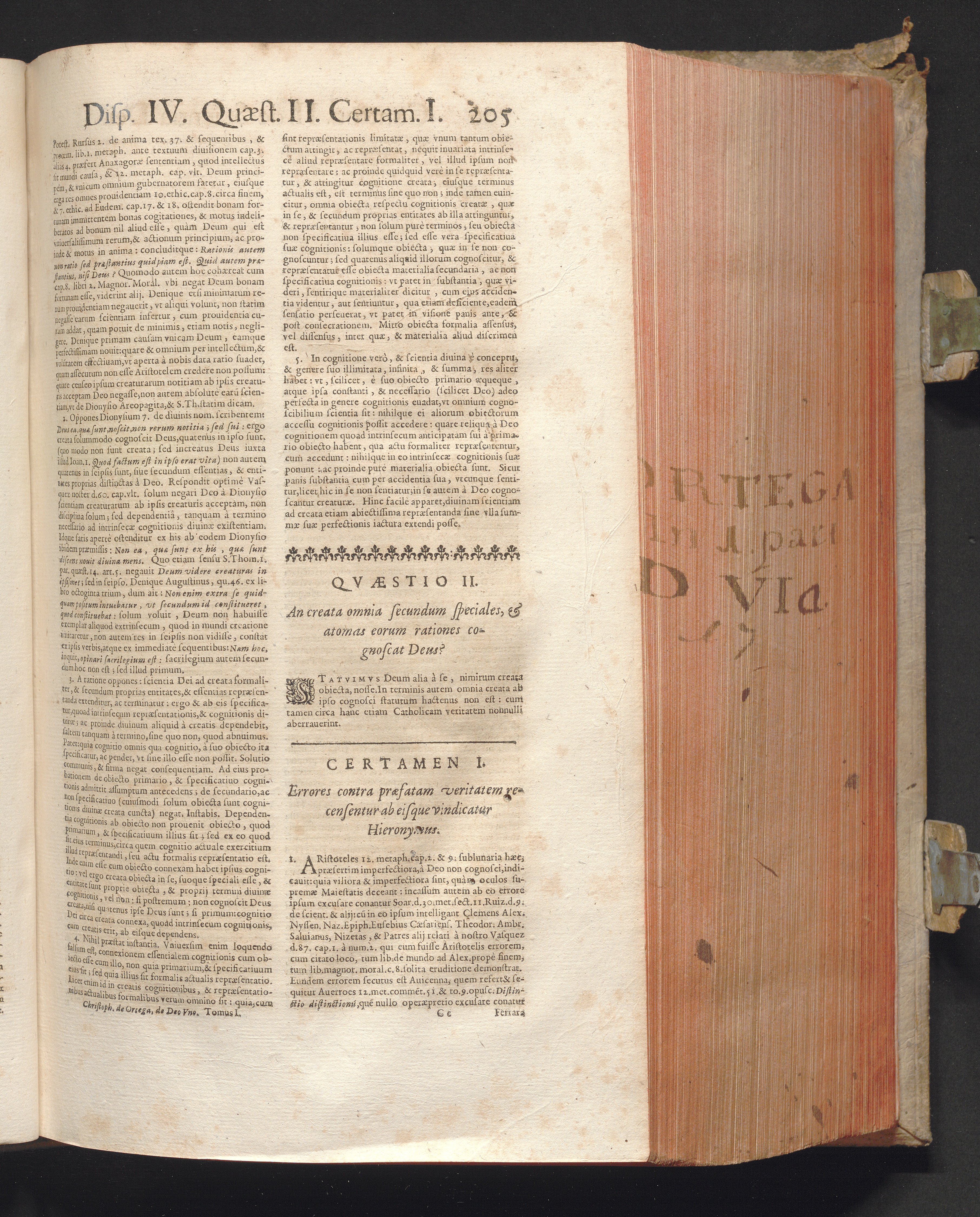 1 (1680) R. P. Christophori De Ortega È Societate Iesu, Quondam Scolasticæ Theologiæ publici Professoris, ac ejusdem Facultatis Præfecti ... Theologia Controversiarum Dogmaticarum, & Scholasticarum, de Divina Essentia, Attributis non vitalibus, de Scientia, & de Decreto concurrendi cum causis liberis