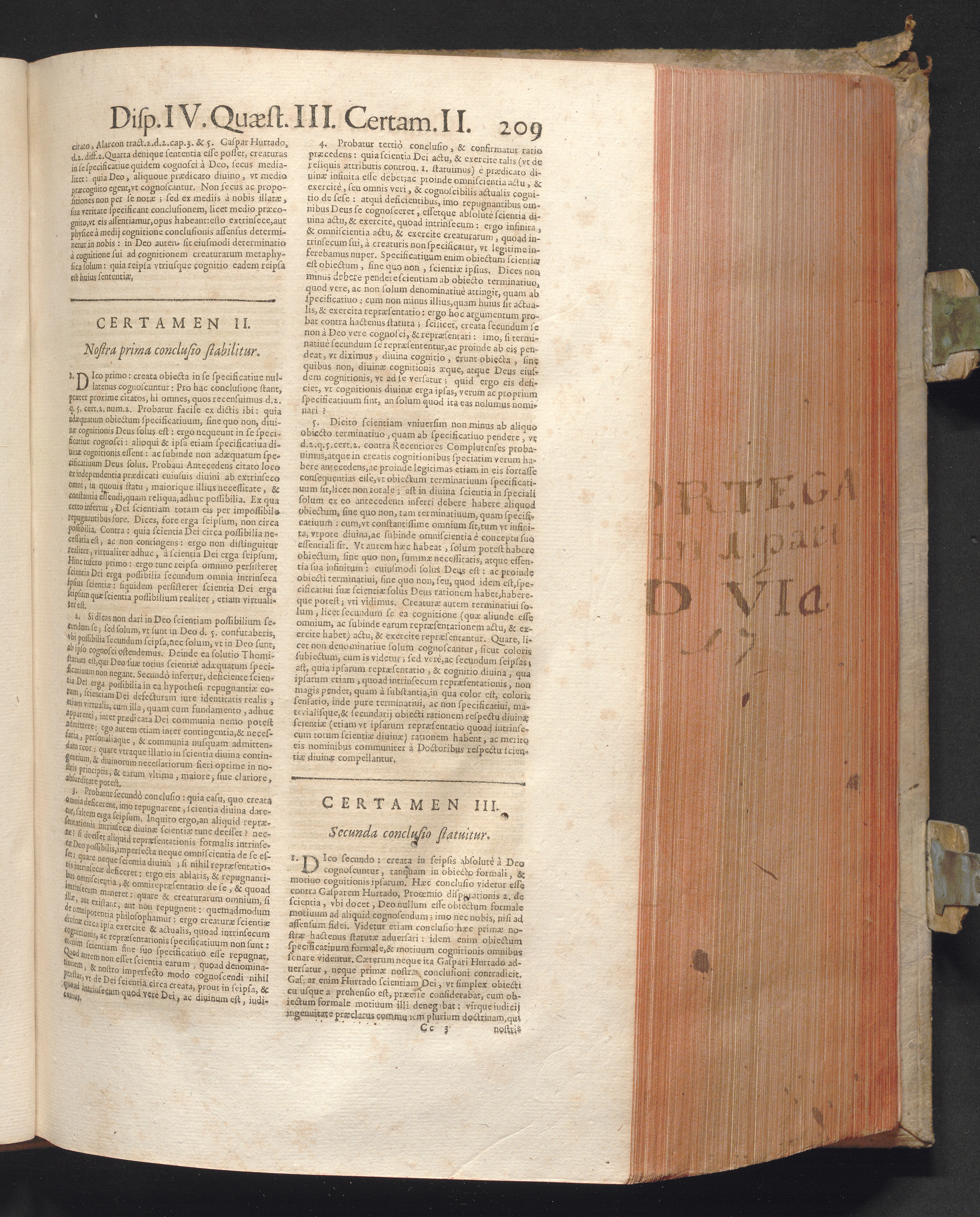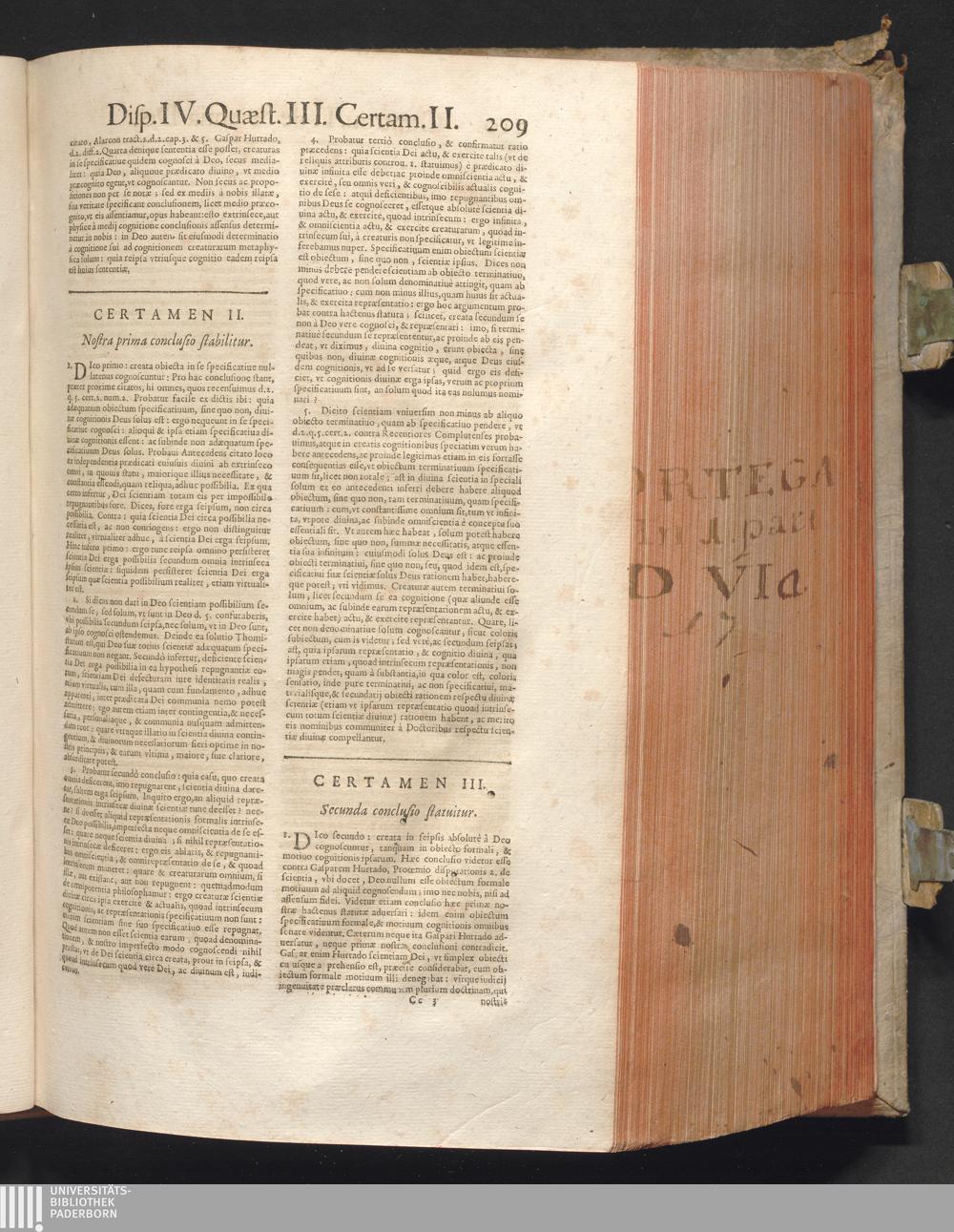 1 (1680) R. P. Christophori De Ortega È Societate Iesu, Quondam Scolasticæ Theologiæ publici Professoris, ac ejusdem Facultatis Præfecti ... Theologia Controversiarum Dogmaticarum, & Scholasticarum, de Divina Essentia, Attributis non vitalibus, de Scientia, & de Decreto concurrendi cum causis liberis