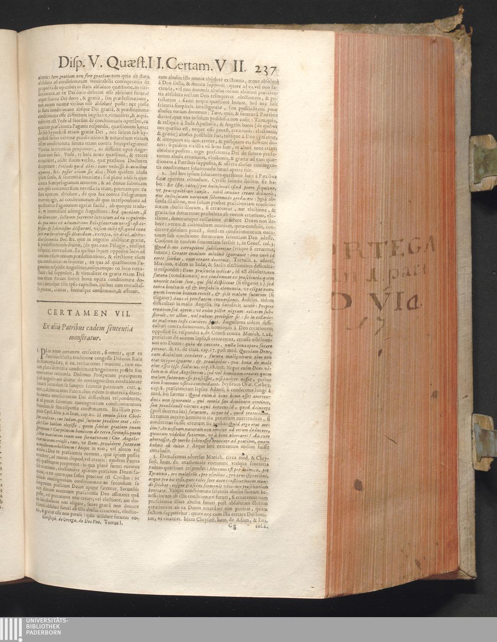 1 (1680) R. P. Christophori De Ortega È Societate Iesu, Quondam Scolasticæ Theologiæ publici Professoris, ac ejusdem Facultatis Præfecti ... Theologia Controversiarum Dogmaticarum, & Scholasticarum, de Divina Essentia, Attributis non vitalibus, de Scientia, & de Decreto concurrendi cum causis liberis
