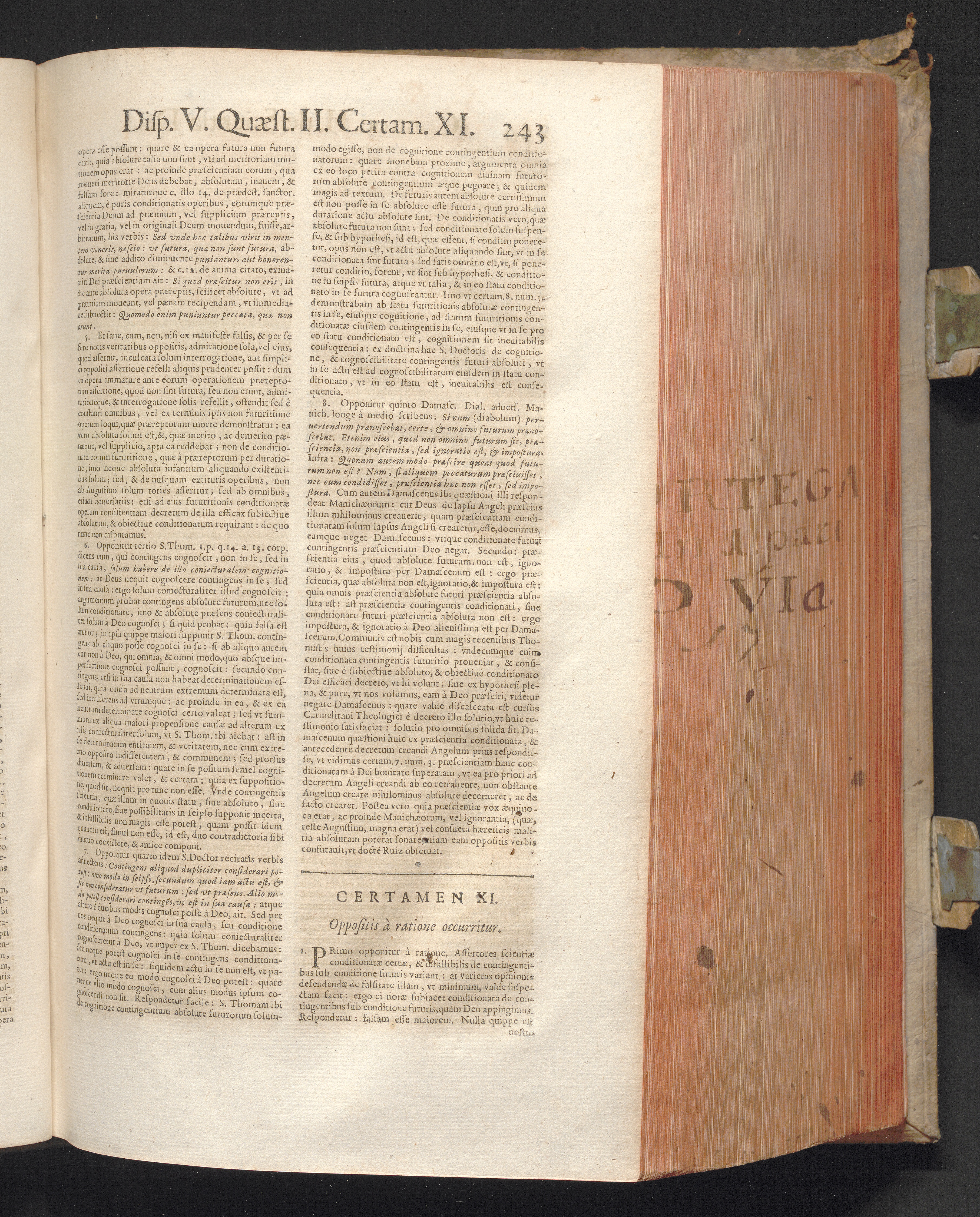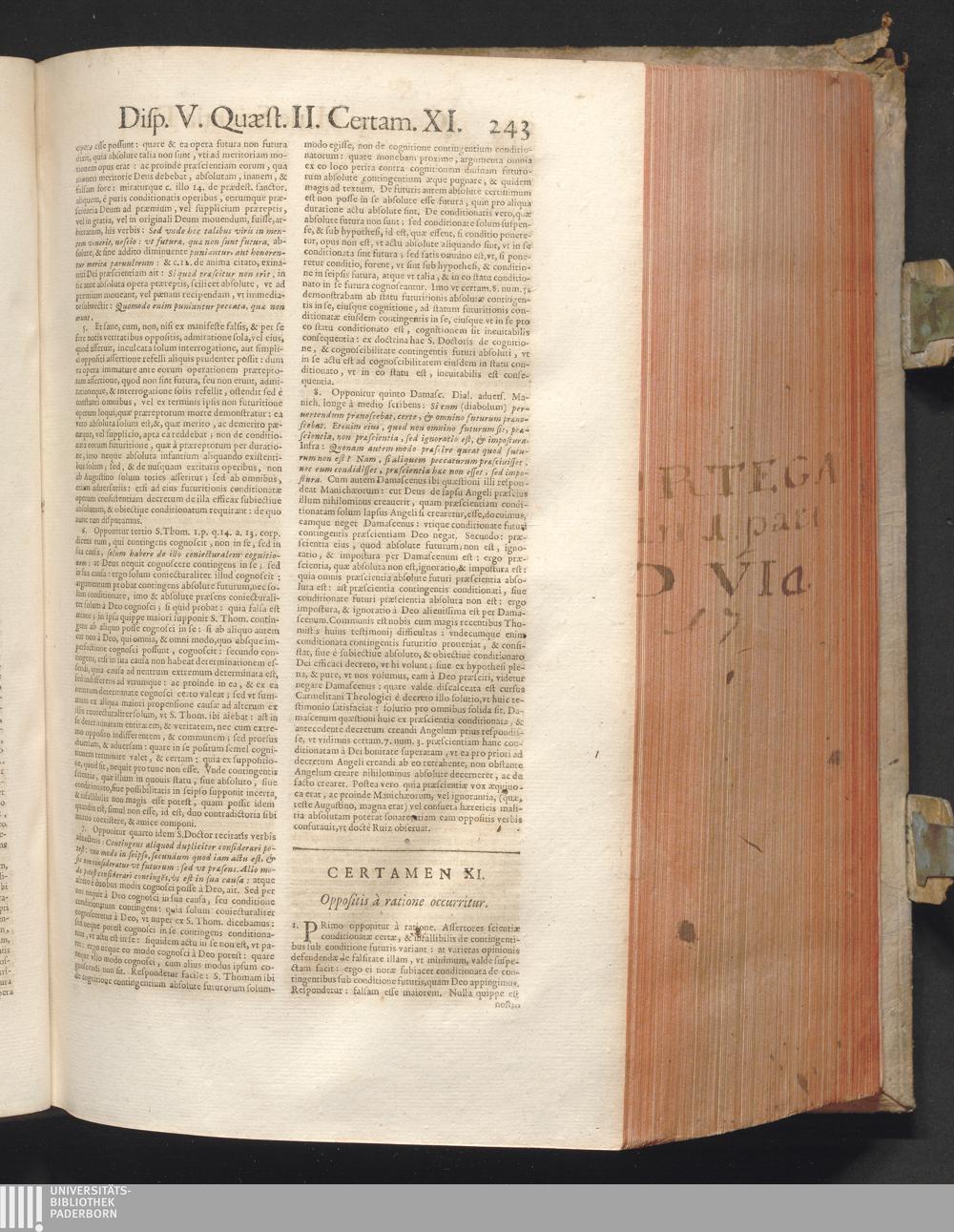 1 (1680) R. P. Christophori De Ortega È Societate Iesu, Quondam Scolasticæ Theologiæ publici Professoris, ac ejusdem Facultatis Præfecti ... Theologia Controversiarum Dogmaticarum, & Scholasticarum, de Divina Essentia, Attributis non vitalibus, de Scientia, & de Decreto concurrendi cum causis liberis