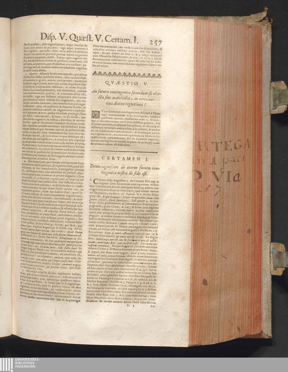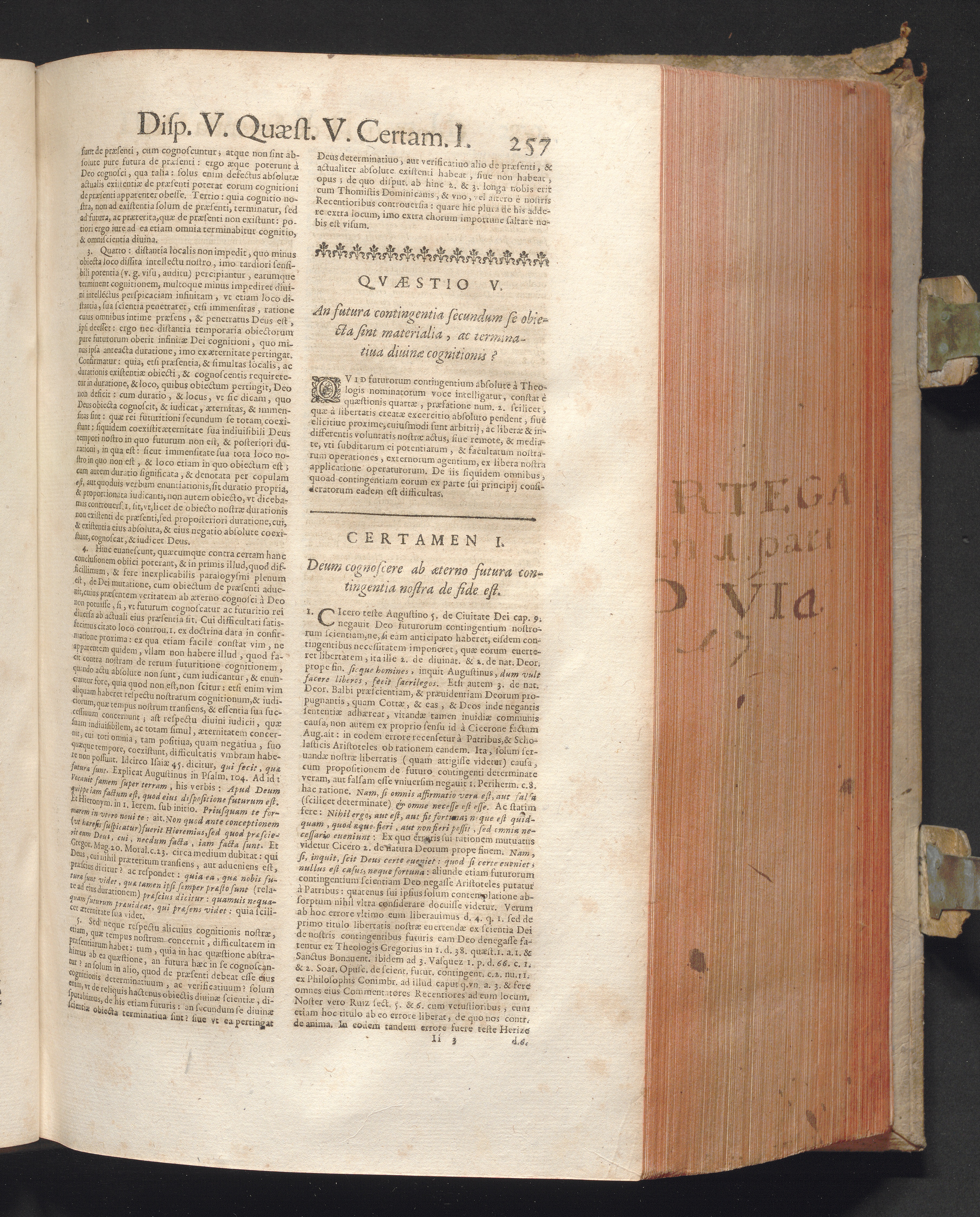 1 (1680) R. P. Christophori De Ortega È Societate Iesu, Quondam Scolasticæ Theologiæ publici Professoris, ac ejusdem Facultatis Præfecti ... Theologia Controversiarum Dogmaticarum, & Scholasticarum, de Divina Essentia, Attributis non vitalibus, de Scientia, & de Decreto concurrendi cum causis liberis