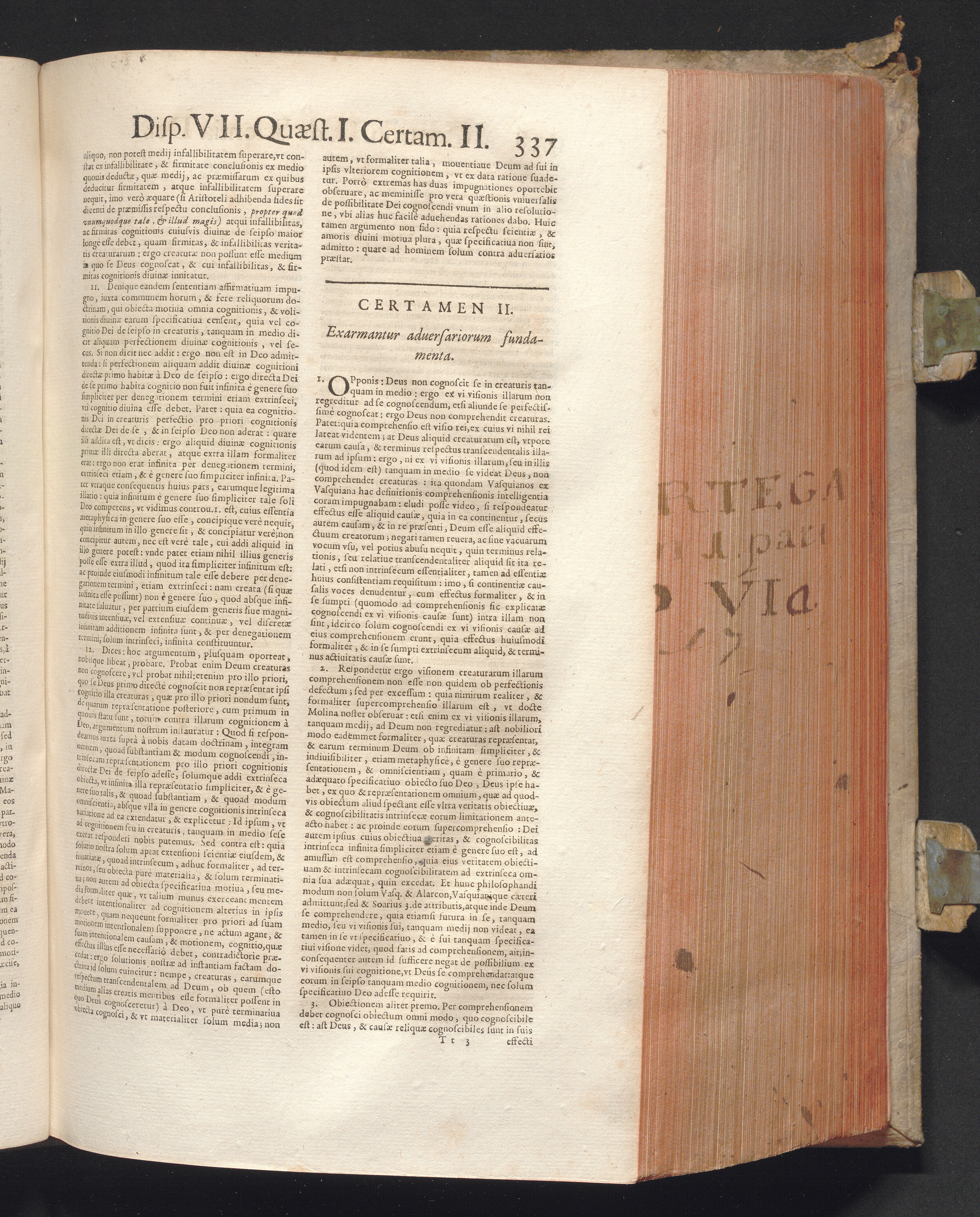 1 (1680) R. P. Christophori De Ortega È Societate Iesu, Quondam Scolasticæ Theologiæ publici Professoris, ac ejusdem Facultatis Præfecti ... Theologia Controversiarum Dogmaticarum, & Scholasticarum, de Divina Essentia, Attributis non vitalibus, de Scientia, & de Decreto concurrendi cum causis liberis