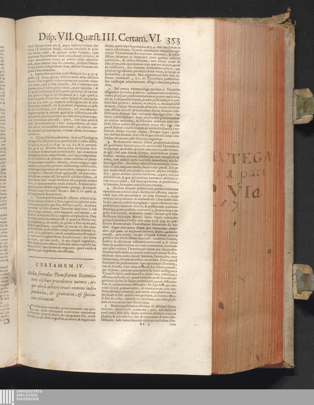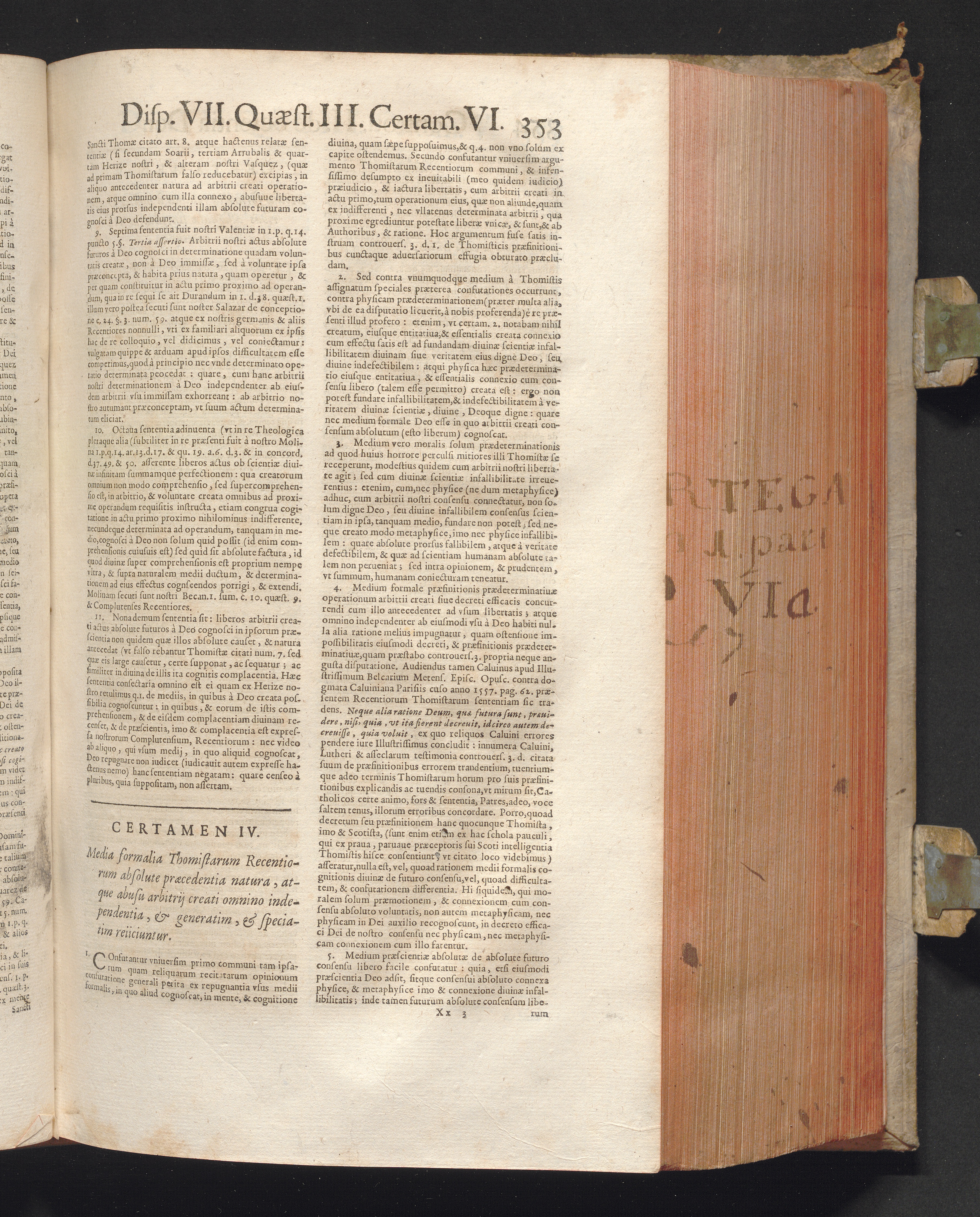 1 (1680) R. P. Christophori De Ortega È Societate Iesu, Quondam Scolasticæ Theologiæ publici Professoris, ac ejusdem Facultatis Præfecti ... Theologia Controversiarum Dogmaticarum, & Scholasticarum, de Divina Essentia, Attributis non vitalibus, de Scientia, & de Decreto concurrendi cum causis liberis