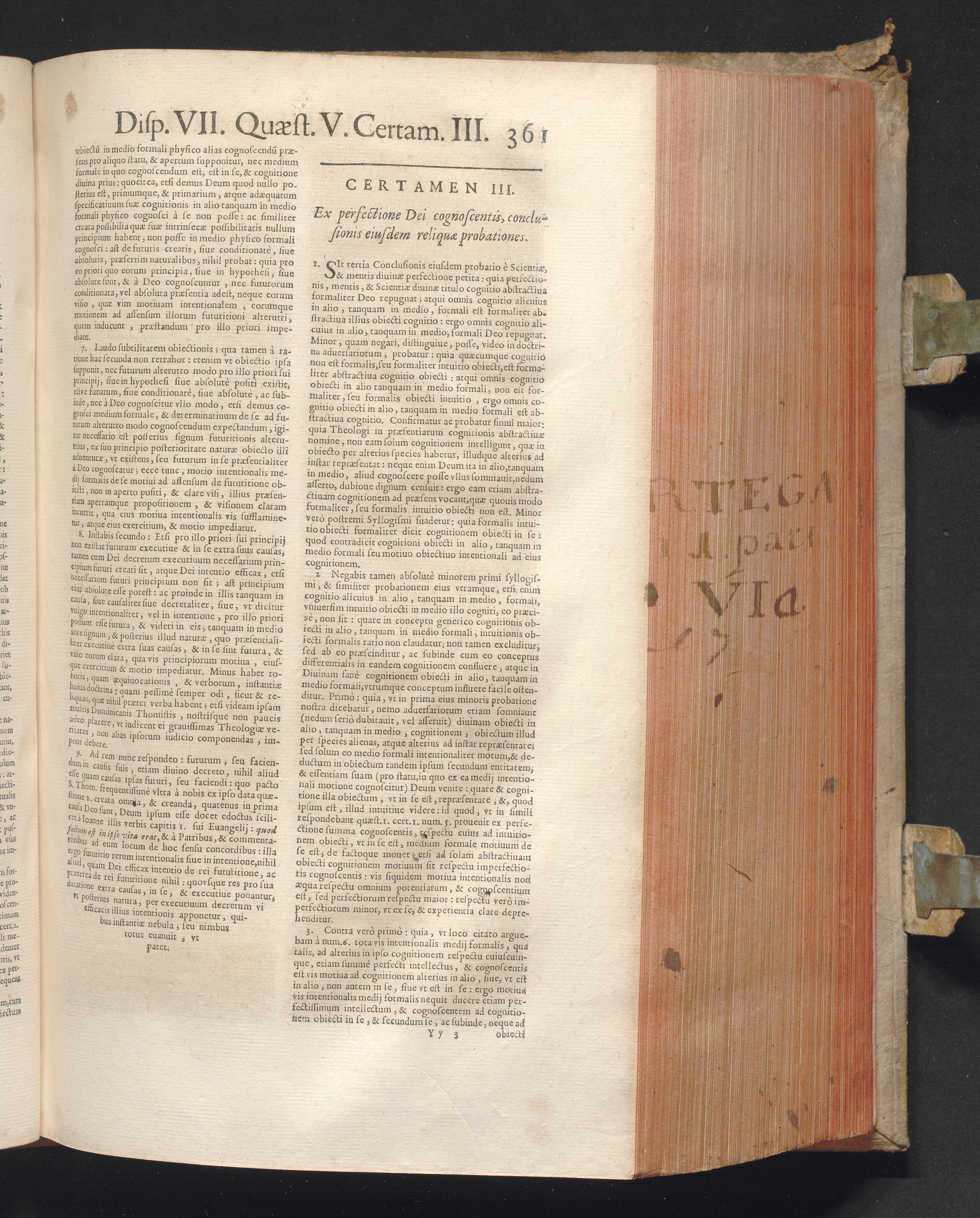 1 (1680) R. P. Christophori De Ortega È Societate Iesu, Quondam Scolasticæ Theologiæ publici Professoris, ac ejusdem Facultatis Præfecti ... Theologia Controversiarum Dogmaticarum, & Scholasticarum, de Divina Essentia, Attributis non vitalibus, de Scientia, & de Decreto concurrendi cum causis liberis