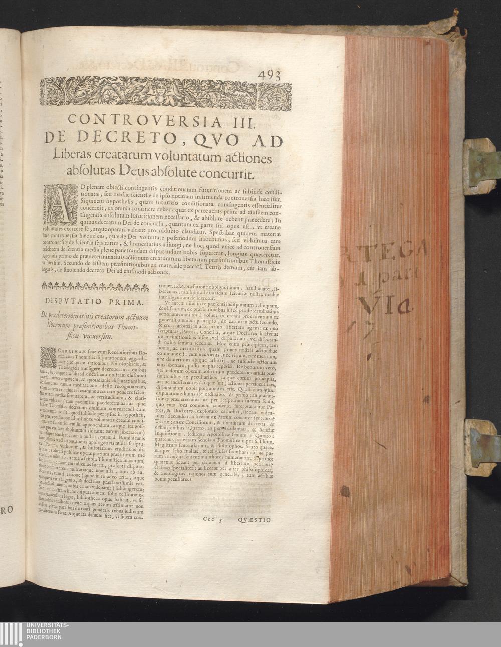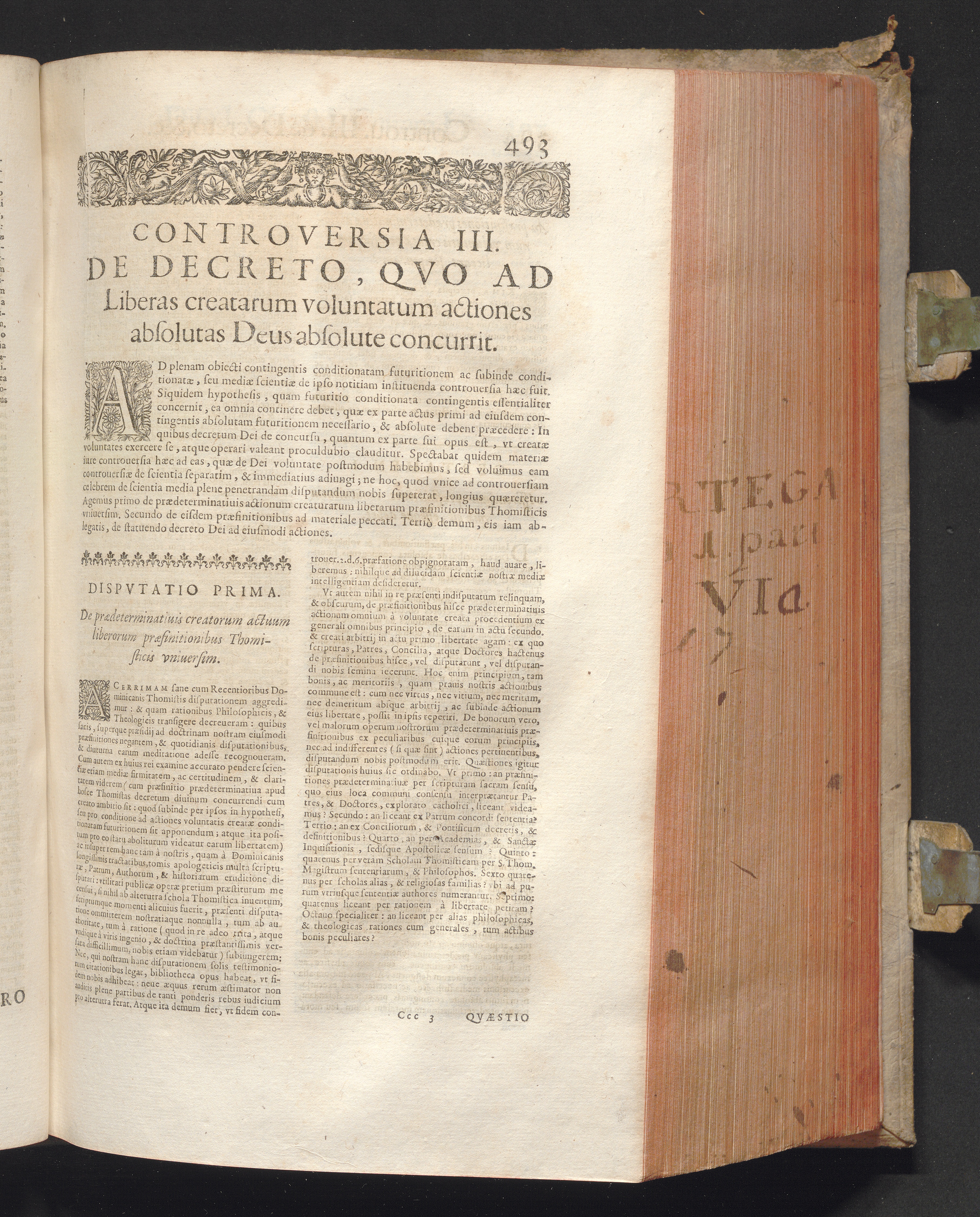 1 (1680) R. P. Christophori De Ortega È Societate Iesu, Quondam Scolasticæ Theologiæ publici Professoris, ac ejusdem Facultatis Præfecti ... Theologia Controversiarum Dogmaticarum, & Scholasticarum, de Divina Essentia, Attributis non vitalibus, de Scientia, & de Decreto concurrendi cum causis liberis
