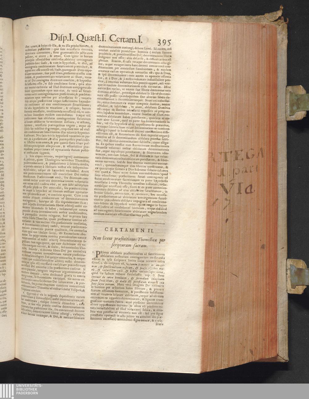 1 (1680) R. P. Christophori De Ortega È Societate Iesu, Quondam Scolasticæ Theologiæ publici Professoris, ac ejusdem Facultatis Præfecti ... Theologia Controversiarum Dogmaticarum, & Scholasticarum, de Divina Essentia, Attributis non vitalibus, de Scientia, & de Decreto concurrendi cum causis liberis