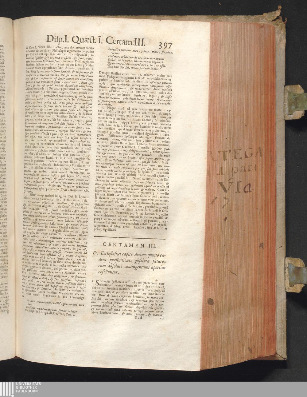 1 (1680) R. P. Christophori De Ortega È Societate Iesu, Quondam Scolasticæ Theologiæ publici Professoris, ac ejusdem Facultatis Præfecti ... Theologia Controversiarum Dogmaticarum, & Scholasticarum, de Divina Essentia, Attributis non vitalibus, de Scientia, & de Decreto concurrendi cum causis liberis