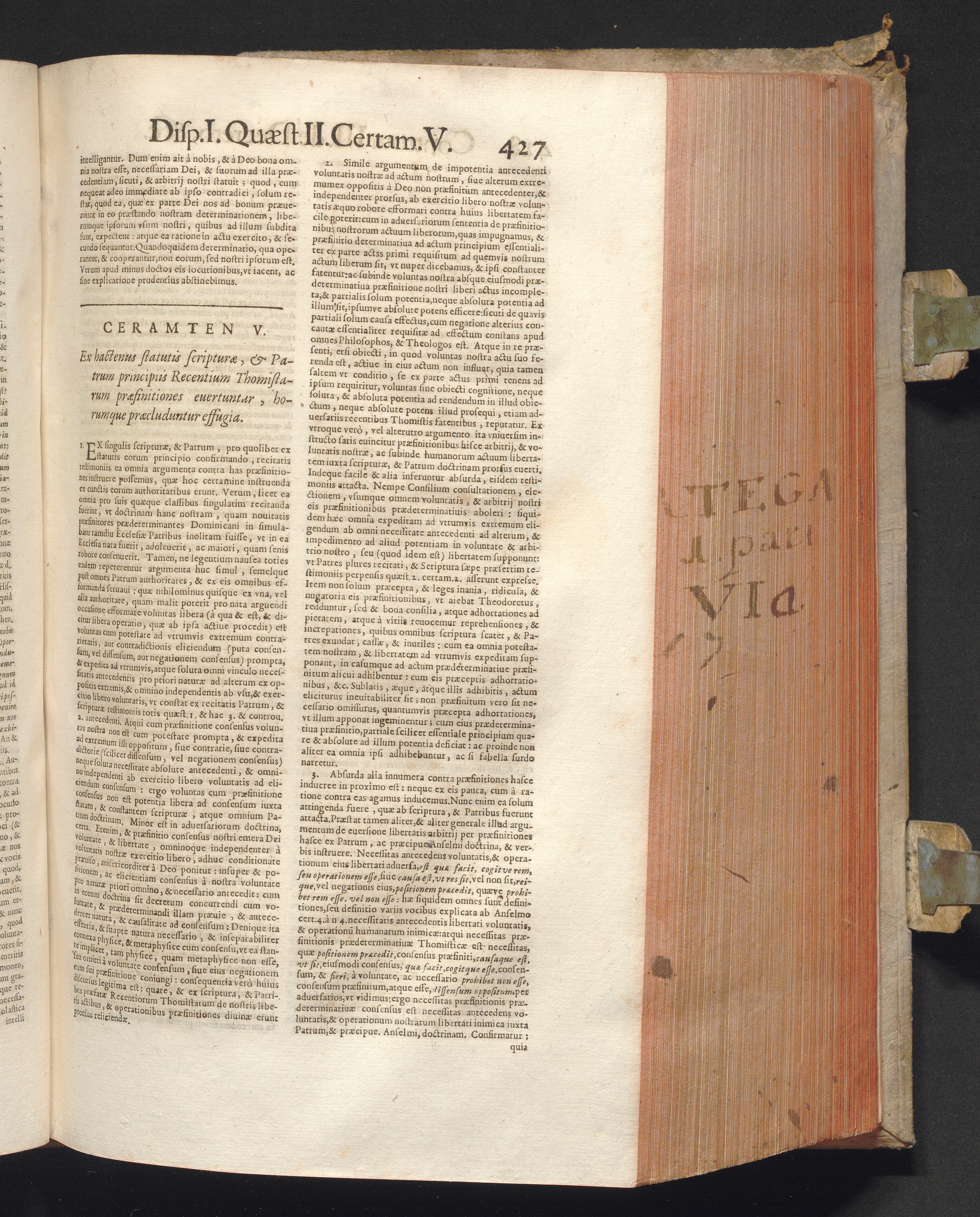 1 (1680) R. P. Christophori De Ortega È Societate Iesu, Quondam Scolasticæ Theologiæ publici Professoris, ac ejusdem Facultatis Præfecti ... Theologia Controversiarum Dogmaticarum, & Scholasticarum, de Divina Essentia, Attributis non vitalibus, de Scientia, & de Decreto concurrendi cum causis liberis