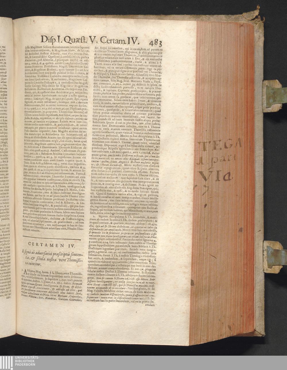 1 (1680) R. P. Christophori De Ortega È Societate Iesu, Quondam Scolasticæ Theologiæ publici Professoris, ac ejusdem Facultatis Præfecti ... Theologia Controversiarum Dogmaticarum, & Scholasticarum, de Divina Essentia, Attributis non vitalibus, de Scientia, & de Decreto concurrendi cum causis liberis