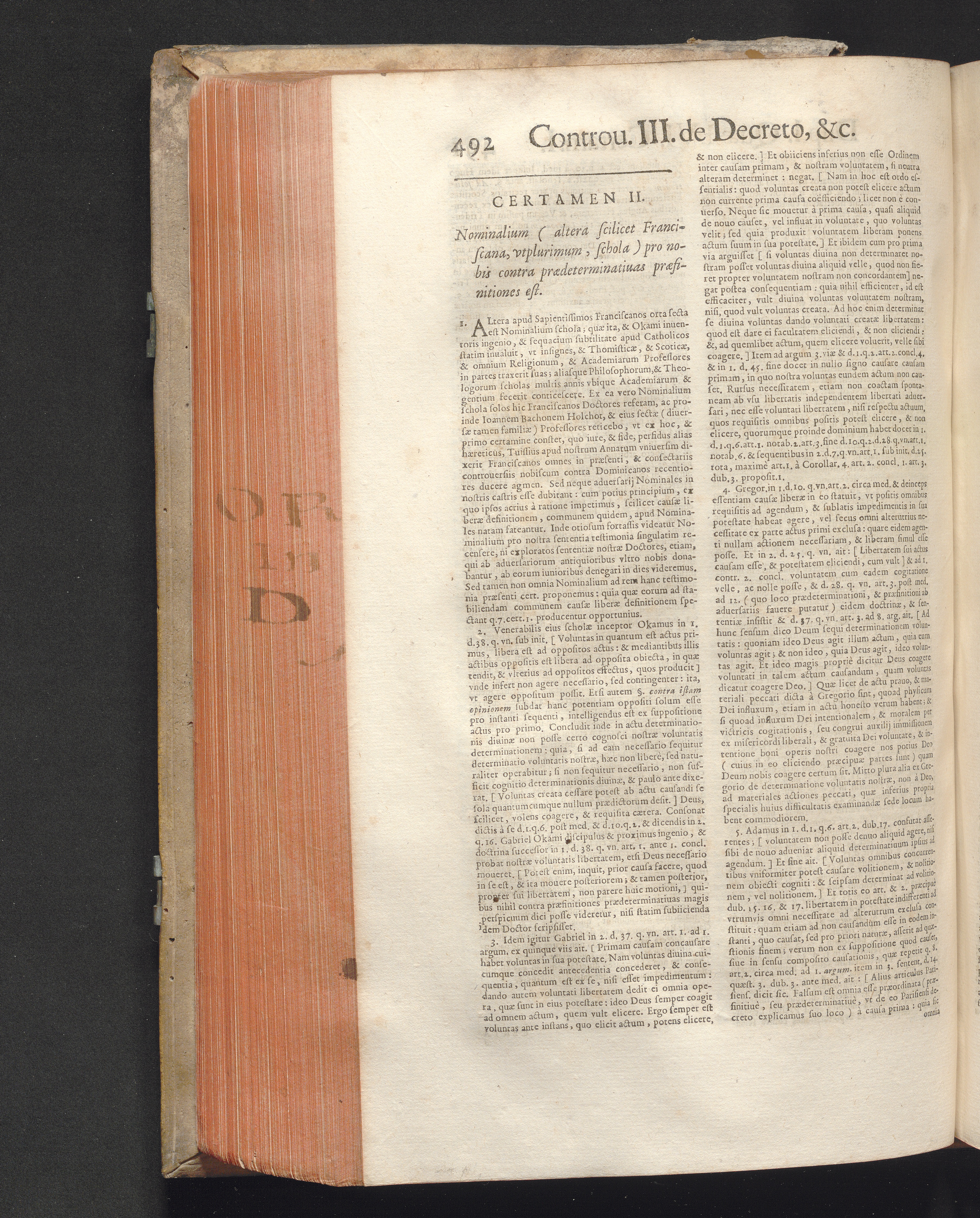 1 (1680) R. P. Christophori De Ortega È Societate Iesu, Quondam Scolasticæ Theologiæ publici Professoris, ac ejusdem Facultatis Præfecti ... Theologia Controversiarum Dogmaticarum, & Scholasticarum, de Divina Essentia, Attributis non vitalibus, de Scientia, & de Decreto concurrendi cum causis liberis