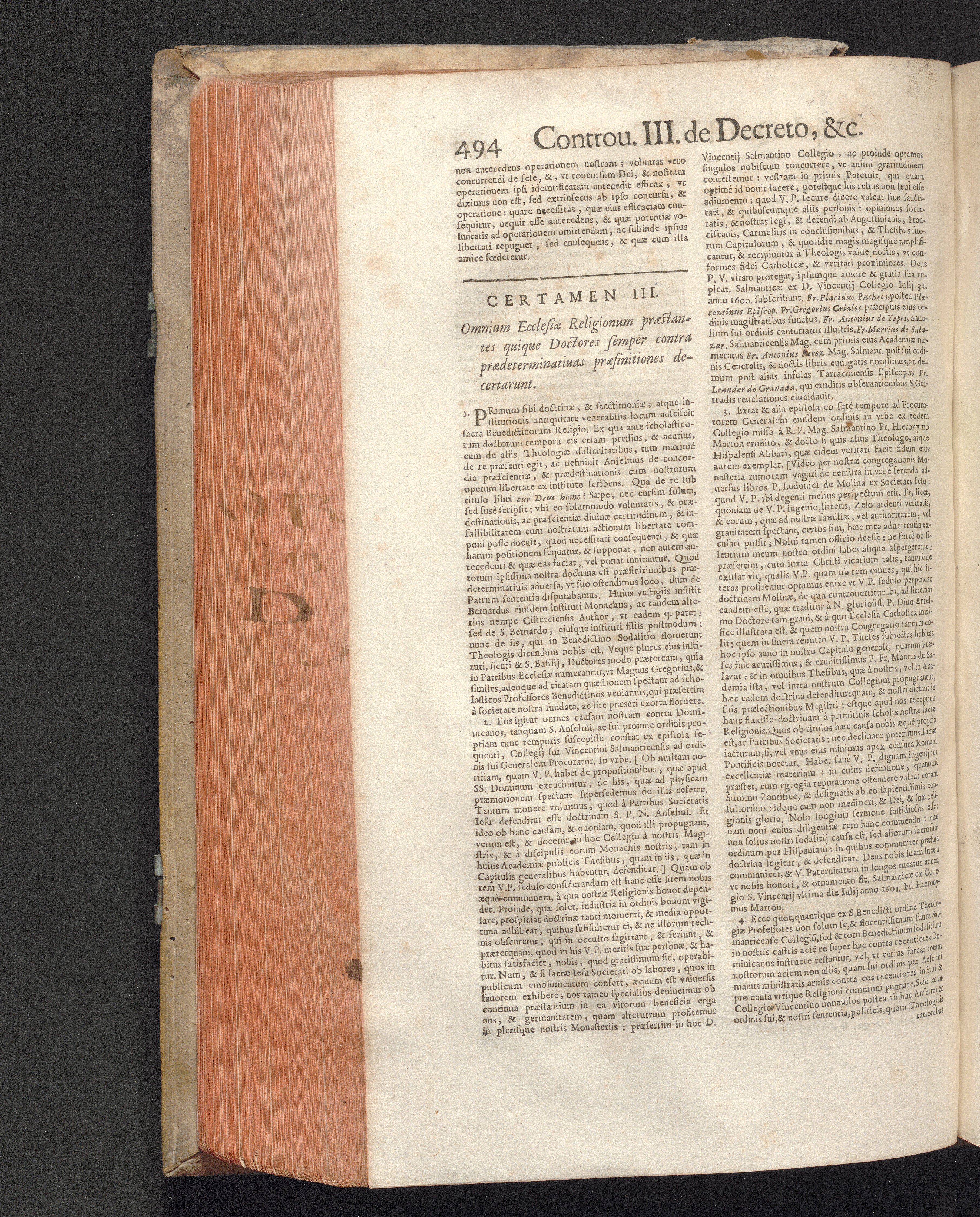 1 (1680) R. P. Christophori De Ortega È Societate Iesu, Quondam Scolasticæ Theologiæ publici Professoris, ac ejusdem Facultatis Præfecti ... Theologia Controversiarum Dogmaticarum, & Scholasticarum, de Divina Essentia, Attributis non vitalibus, de Scientia, & de Decreto concurrendi cum causis liberis