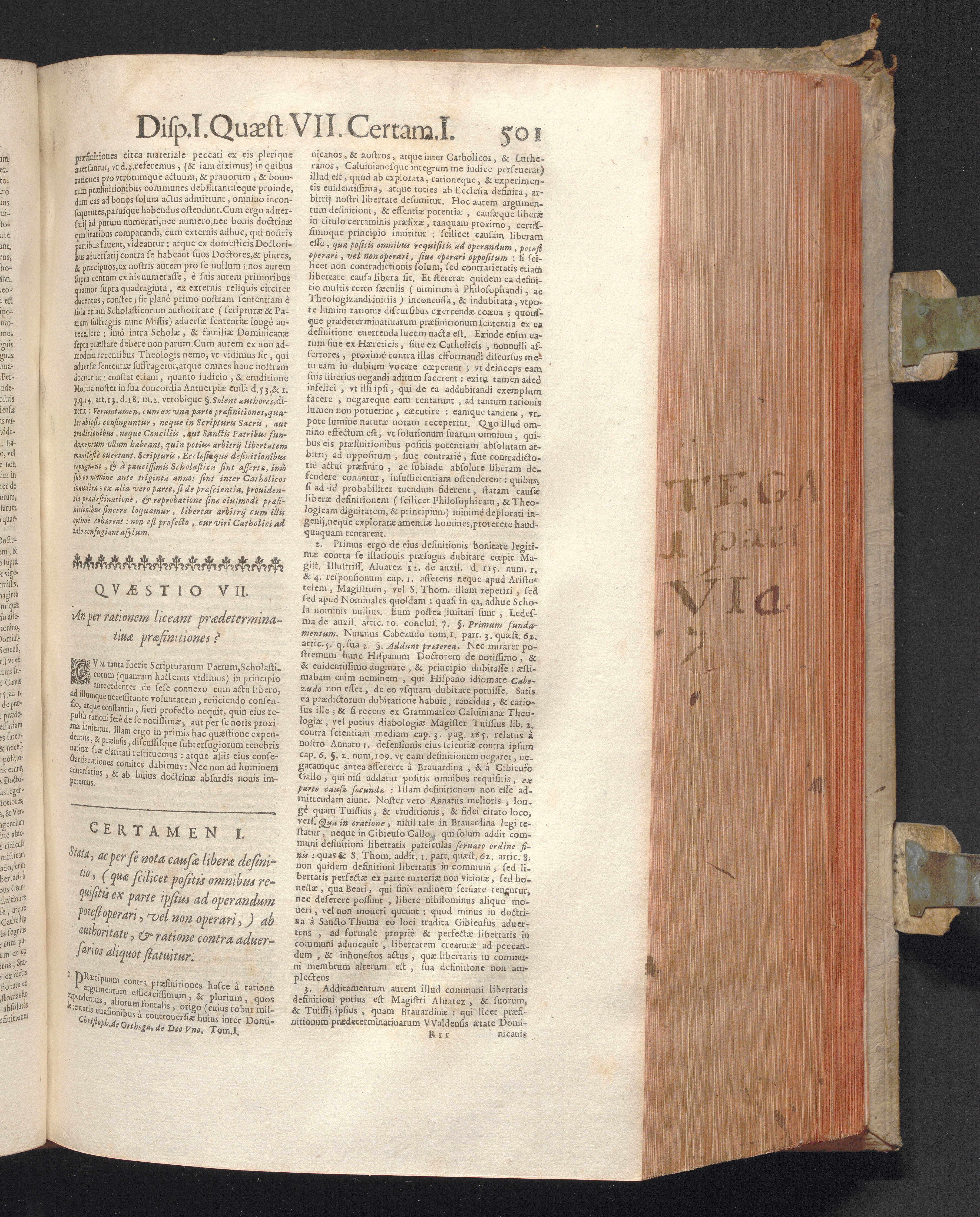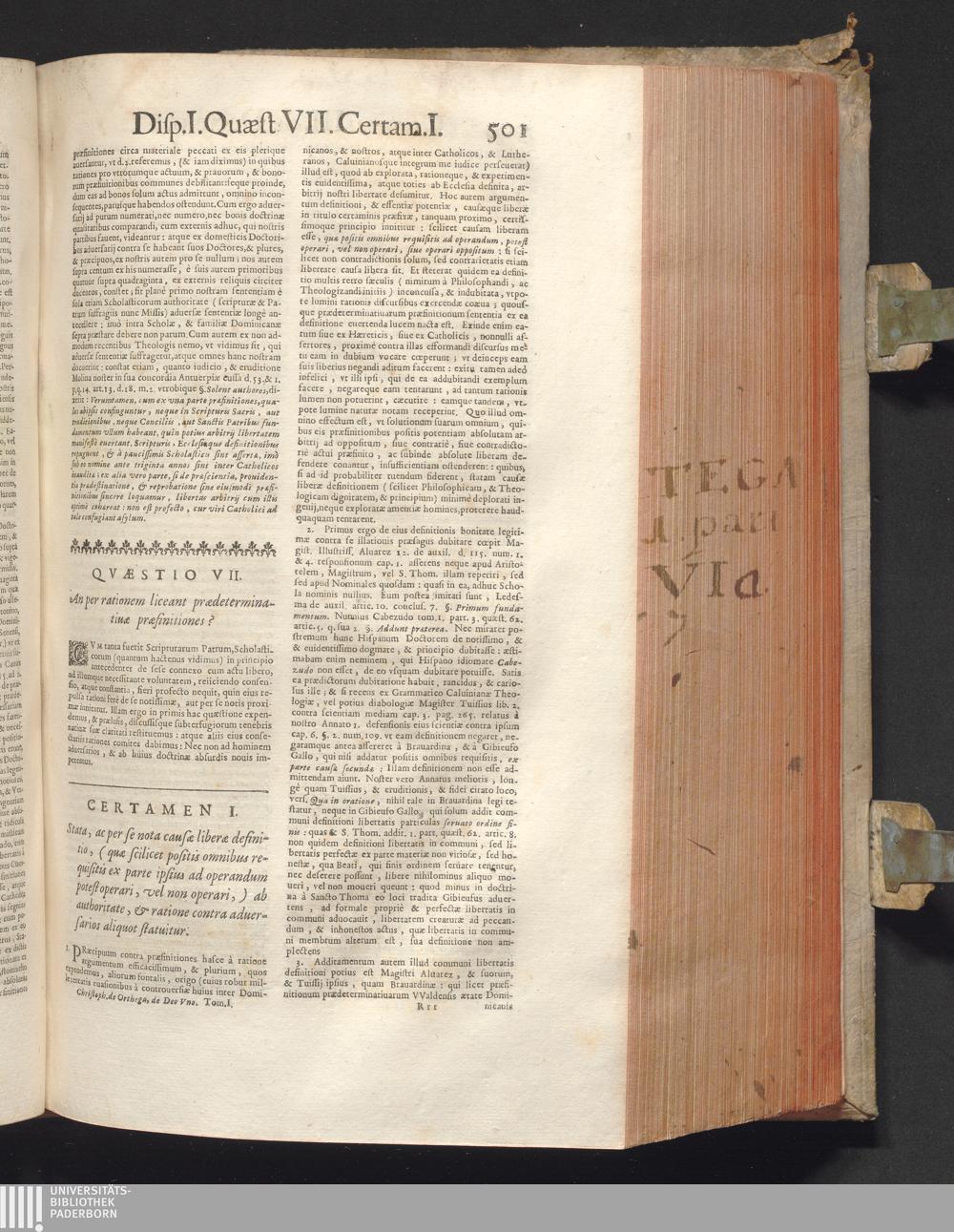 1 (1680) R. P. Christophori De Ortega È Societate Iesu, Quondam Scolasticæ Theologiæ publici Professoris, ac ejusdem Facultatis Præfecti ... Theologia Controversiarum Dogmaticarum, & Scholasticarum, de Divina Essentia, Attributis non vitalibus, de Scientia, & de Decreto concurrendi cum causis liberis