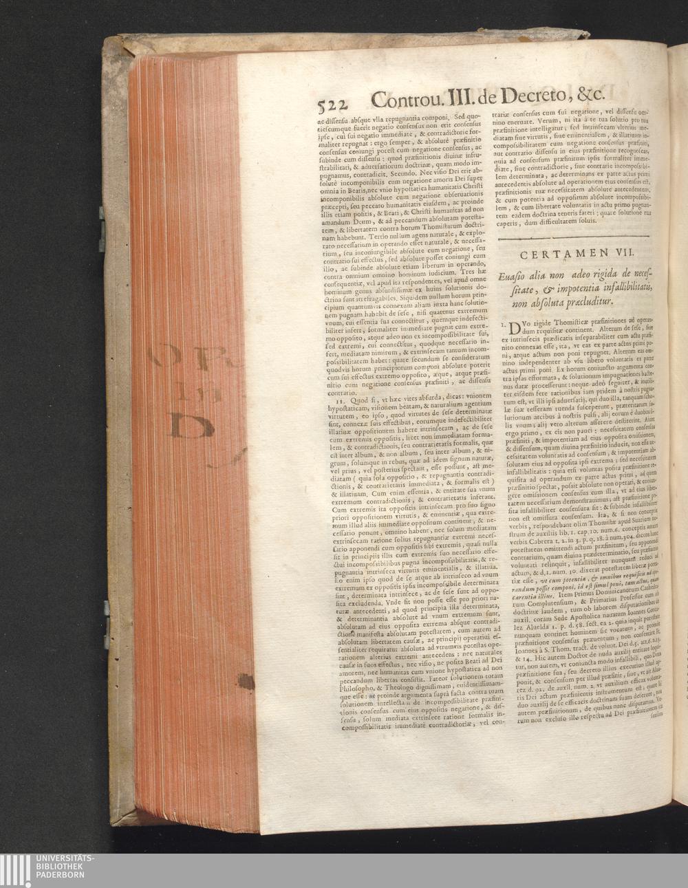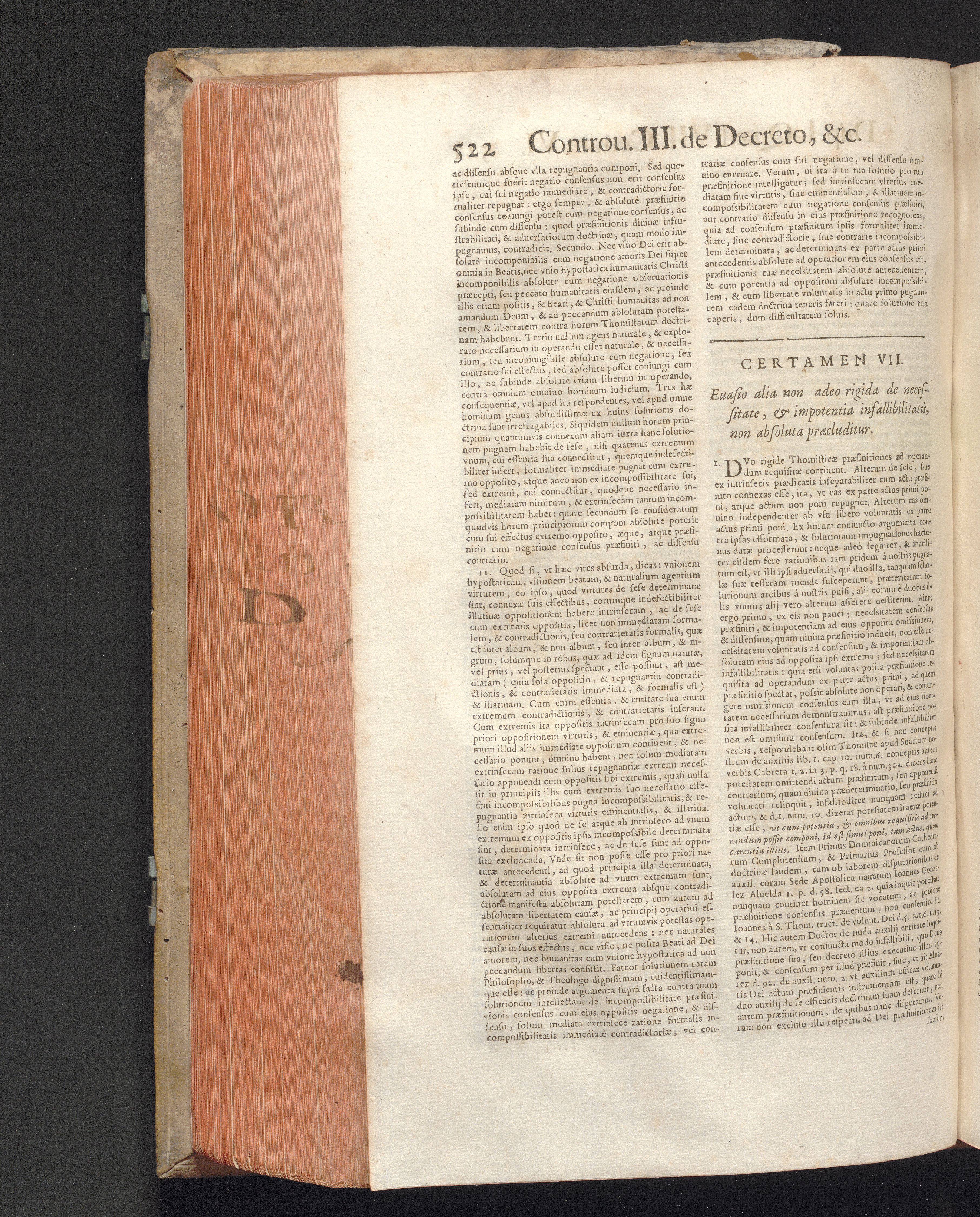 1 (1680) R. P. Christophori De Ortega È Societate Iesu, Quondam Scolasticæ Theologiæ publici Professoris, ac ejusdem Facultatis Præfecti ... Theologia Controversiarum Dogmaticarum, & Scholasticarum, de Divina Essentia, Attributis non vitalibus, de Scientia, & de Decreto concurrendi cum causis liberis