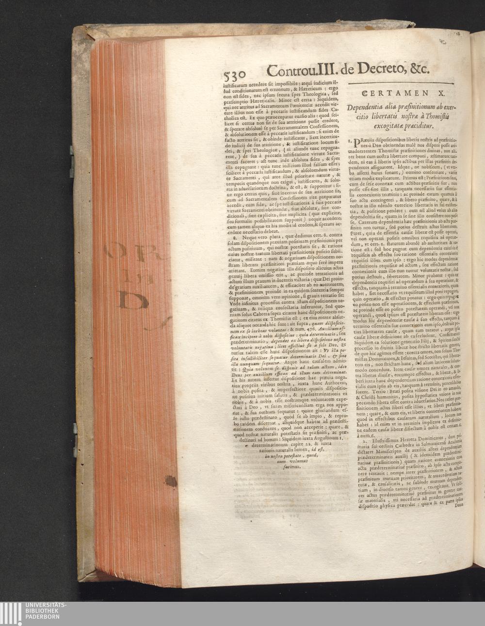 1 (1680) R. P. Christophori De Ortega È Societate Iesu, Quondam Scolasticæ Theologiæ publici Professoris, ac ejusdem Facultatis Præfecti ... Theologia Controversiarum Dogmaticarum, & Scholasticarum, de Divina Essentia, Attributis non vitalibus, de Scientia, & de Decreto concurrendi cum causis liberis