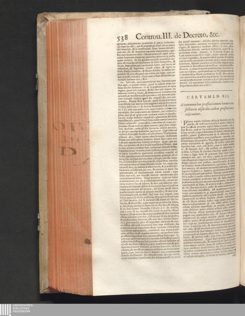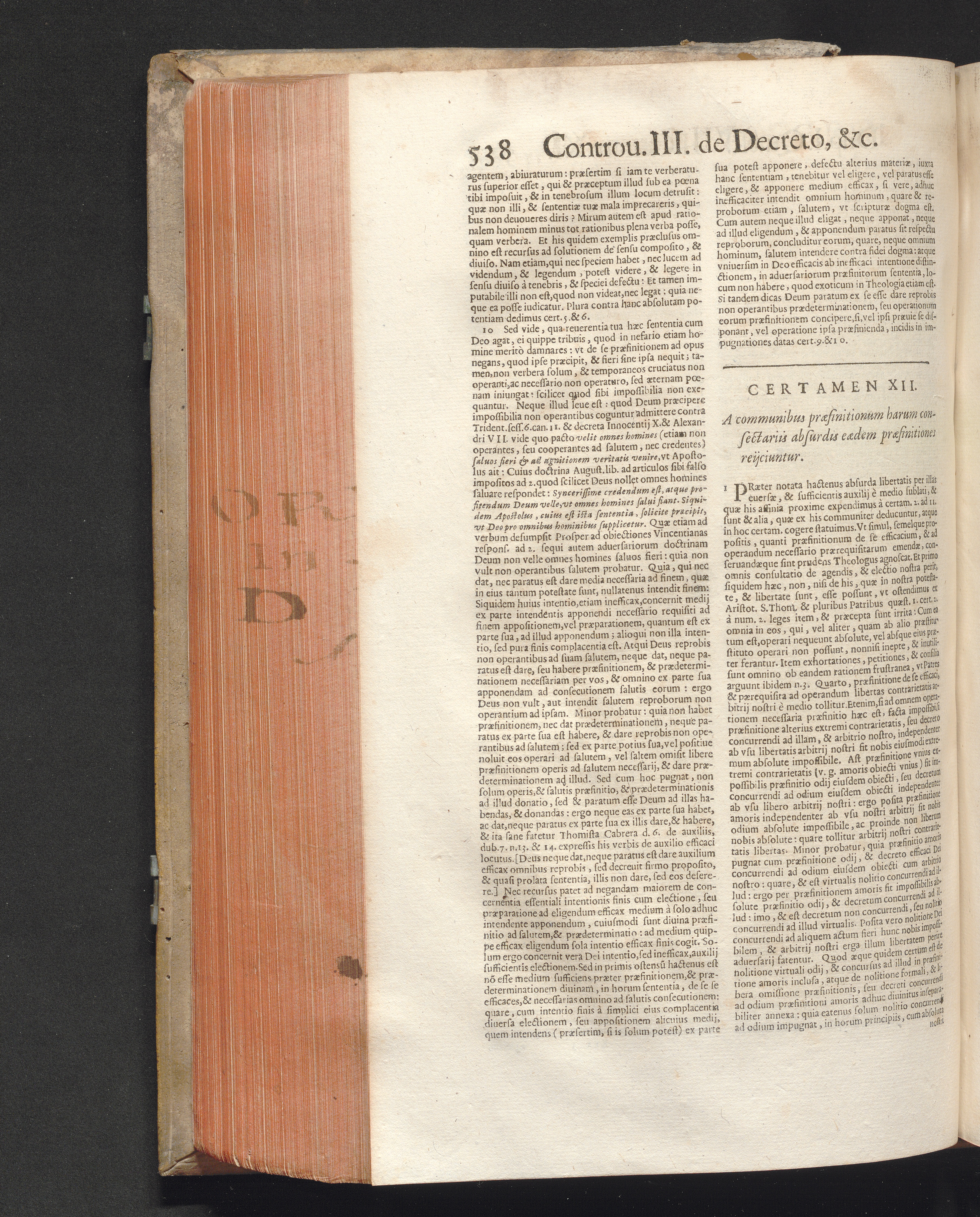 1 (1680) R. P. Christophori De Ortega È Societate Iesu, Quondam Scolasticæ Theologiæ publici Professoris, ac ejusdem Facultatis Præfecti ... Theologia Controversiarum Dogmaticarum, & Scholasticarum, de Divina Essentia, Attributis non vitalibus, de Scientia, & de Decreto concurrendi cum causis liberis