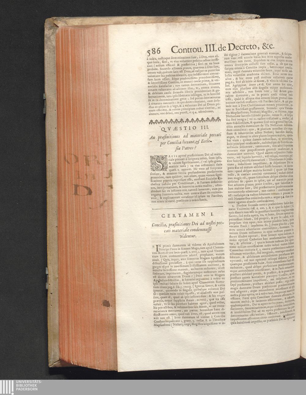 1 (1680) R. P. Christophori De Ortega È Societate Iesu, Quondam Scolasticæ Theologiæ publici Professoris, ac ejusdem Facultatis Præfecti ... Theologia Controversiarum Dogmaticarum, & Scholasticarum, de Divina Essentia, Attributis non vitalibus, de Scientia, & de Decreto concurrendi cum causis liberis