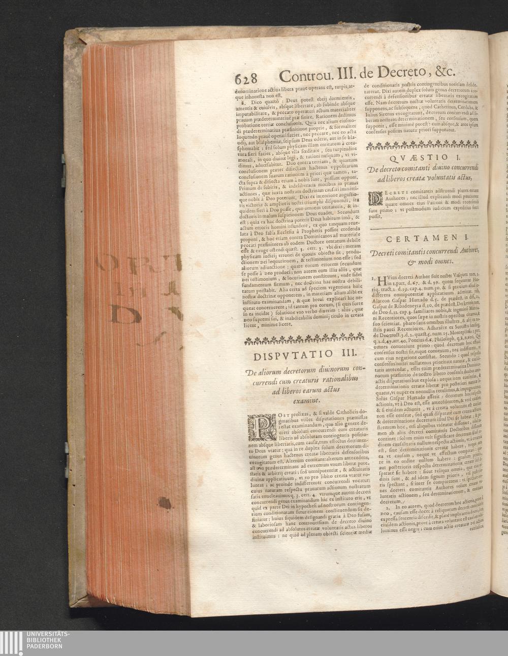1 (1680) R. P. Christophori De Ortega È Societate Iesu, Quondam Scolasticæ Theologiæ publici Professoris, ac ejusdem Facultatis Præfecti ... Theologia Controversiarum Dogmaticarum, & Scholasticarum, de Divina Essentia, Attributis non vitalibus, de Scientia, & de Decreto concurrendi cum causis liberis