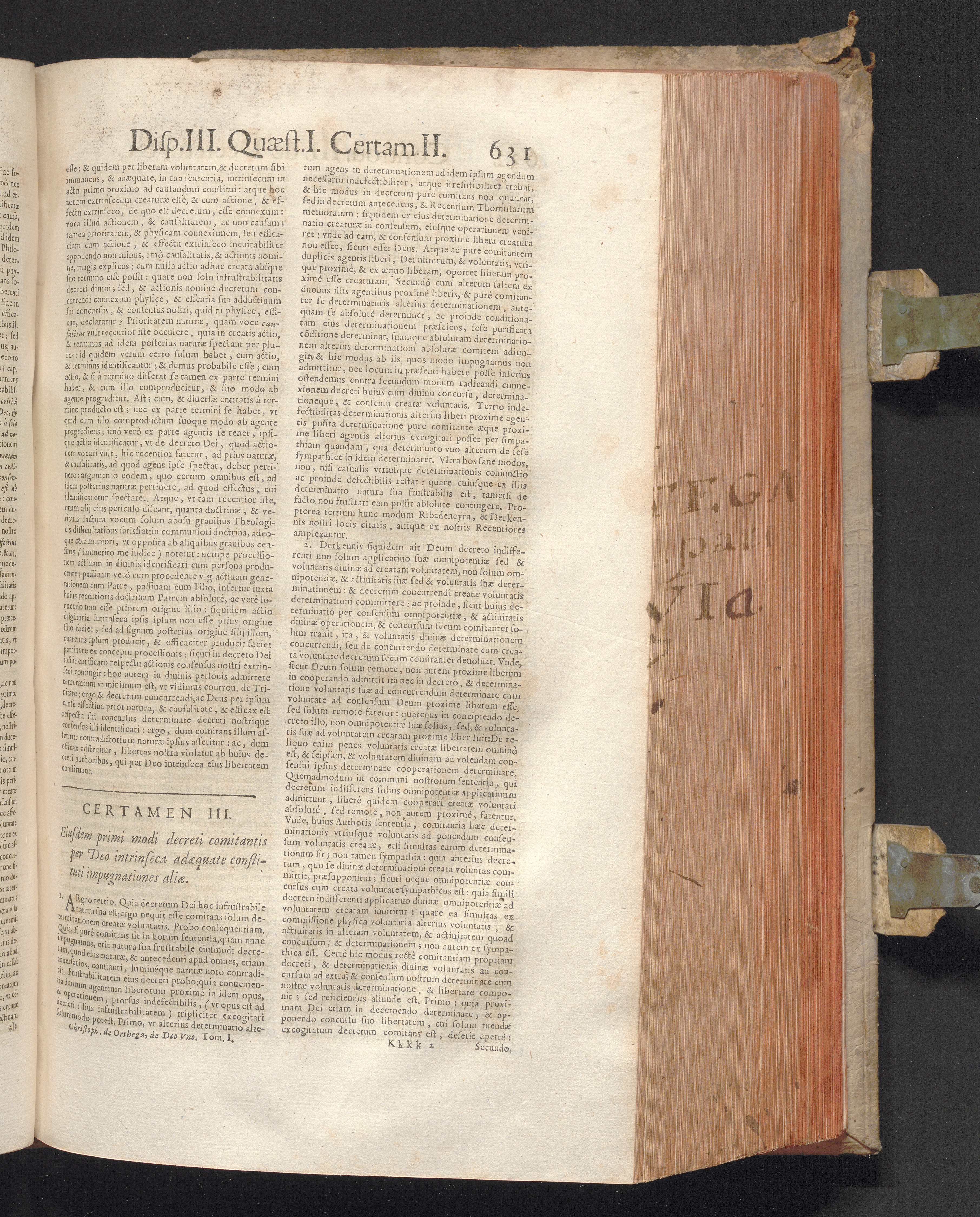 1 (1680) R. P. Christophori De Ortega È Societate Iesu, Quondam Scolasticæ Theologiæ publici Professoris, ac ejusdem Facultatis Præfecti ... Theologia Controversiarum Dogmaticarum, & Scholasticarum, de Divina Essentia, Attributis non vitalibus, de Scientia, & de Decreto concurrendi cum causis liberis