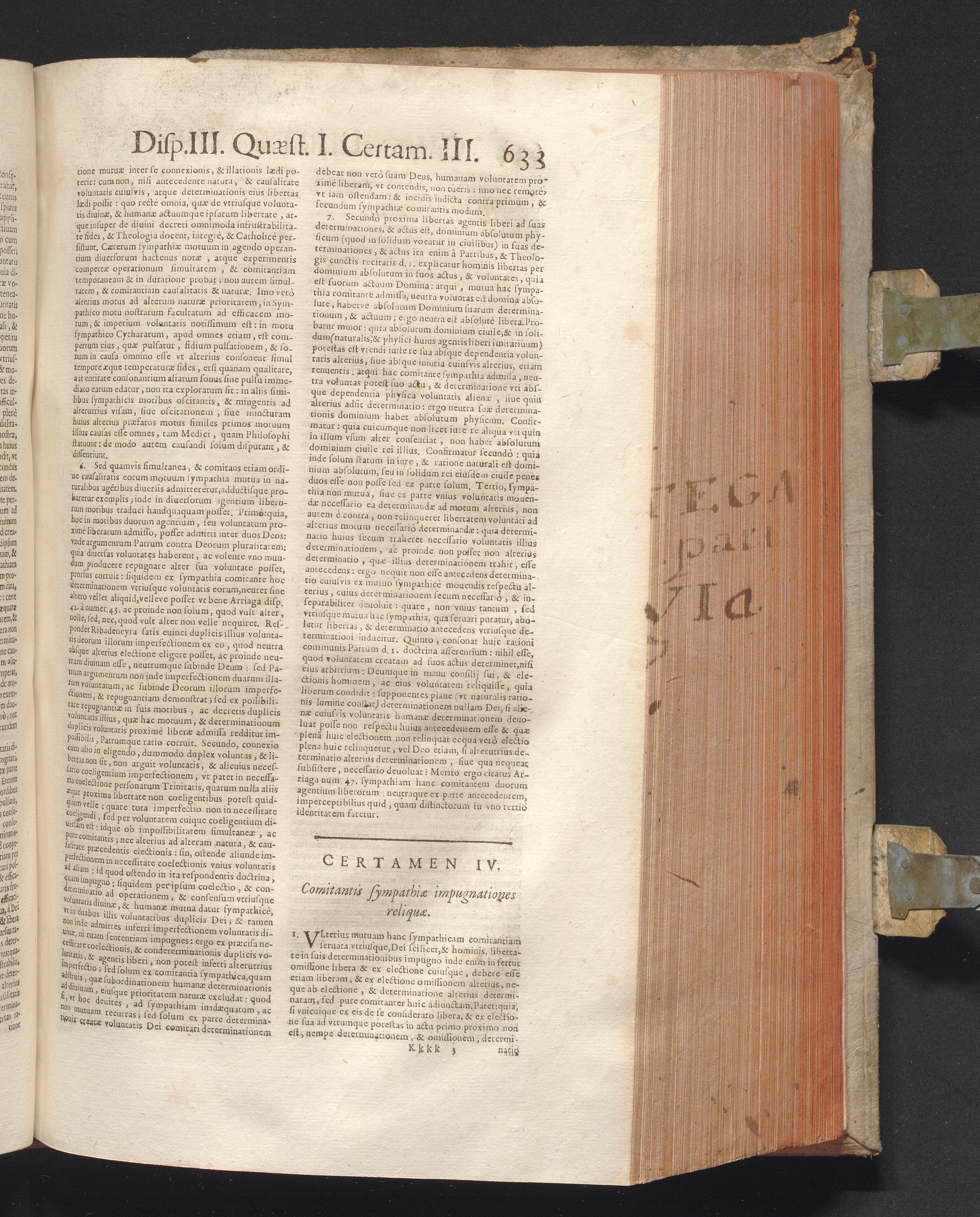 1 (1680) R. P. Christophori De Ortega È Societate Iesu, Quondam Scolasticæ Theologiæ publici Professoris, ac ejusdem Facultatis Præfecti ... Theologia Controversiarum Dogmaticarum, & Scholasticarum, de Divina Essentia, Attributis non vitalibus, de Scientia, & de Decreto concurrendi cum causis liberis