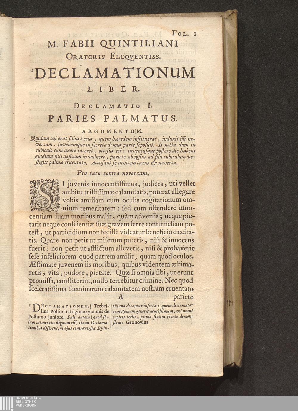 M. Fab. Quintiliani Declamationes Undeviginti. M. Fabii Avi Et Calpurnii Flacci Declamationes.[...]