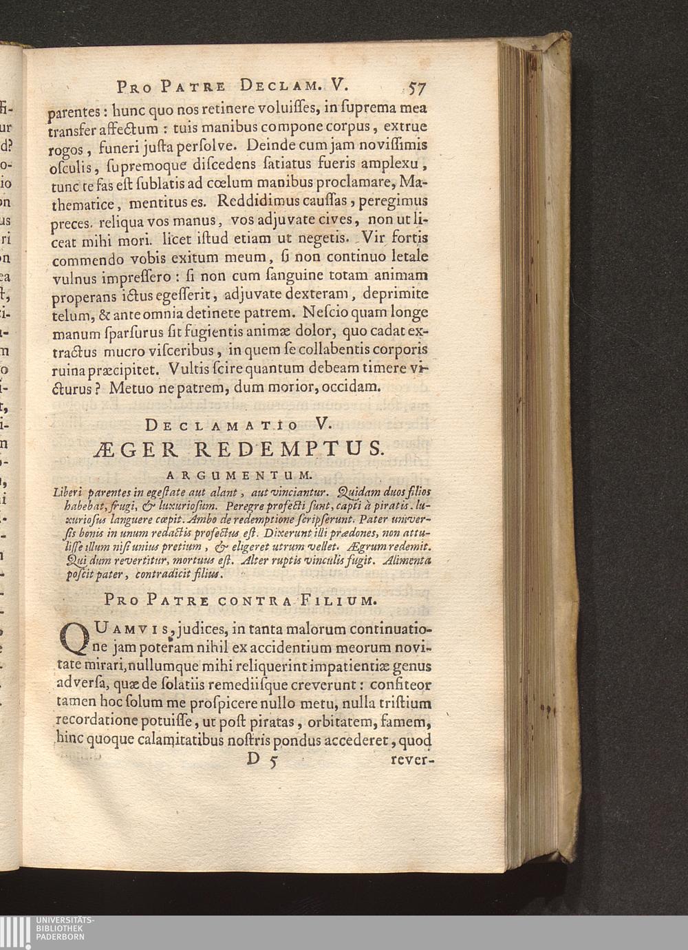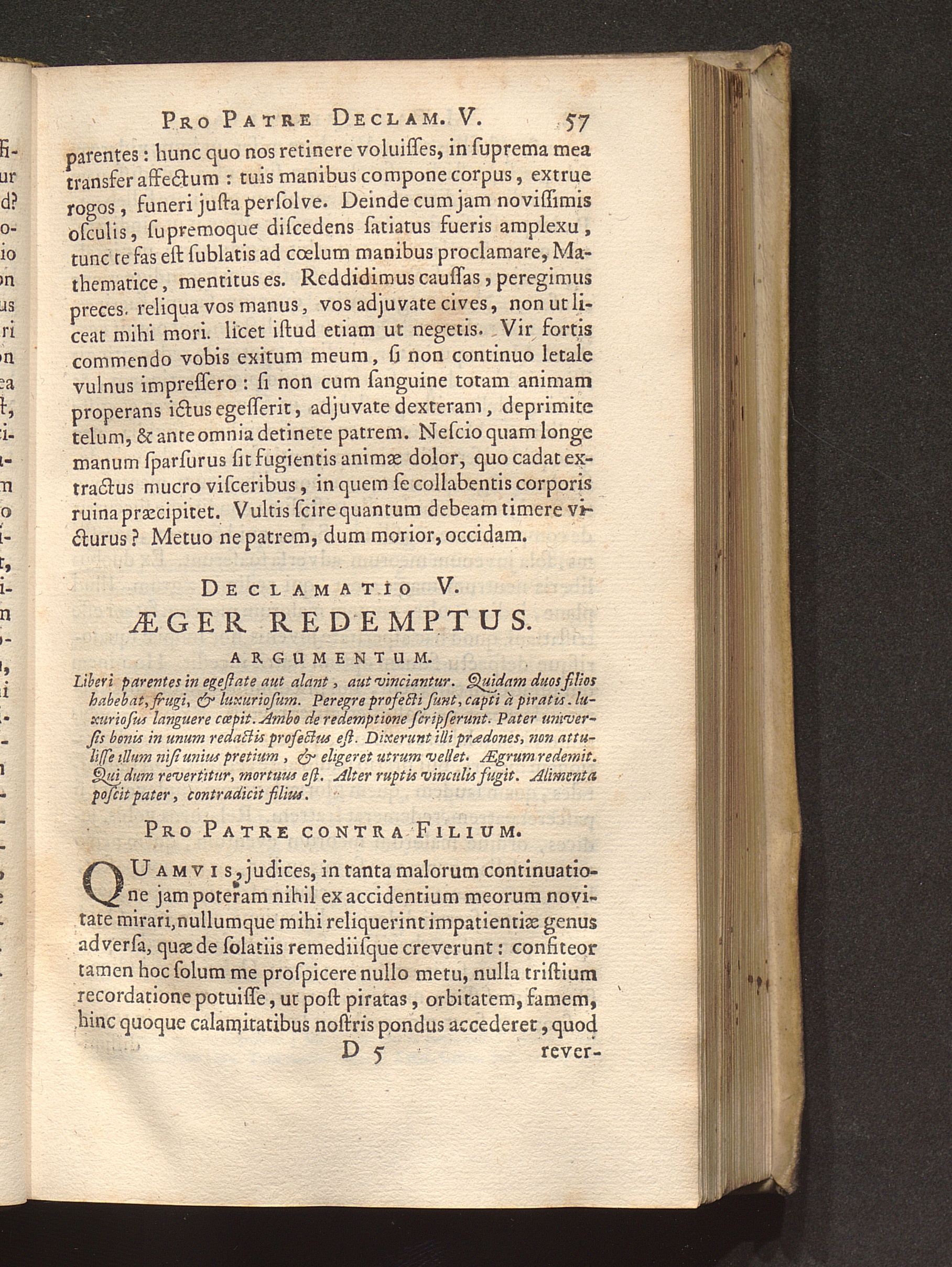 V. Aeger redemptus. Pro patre contra filium.