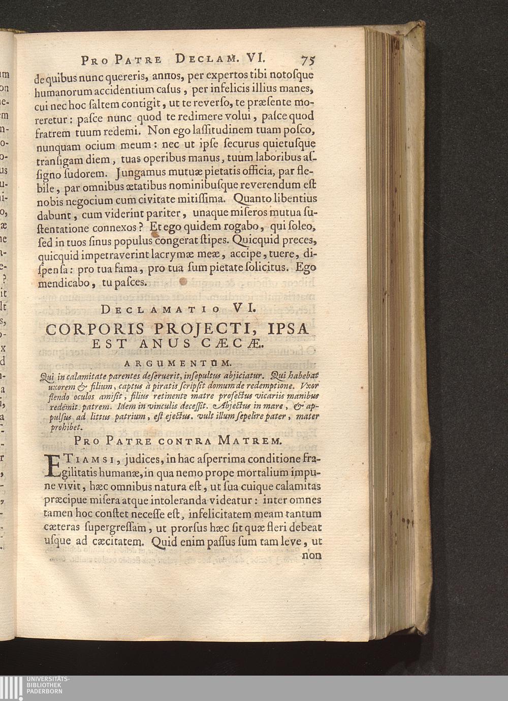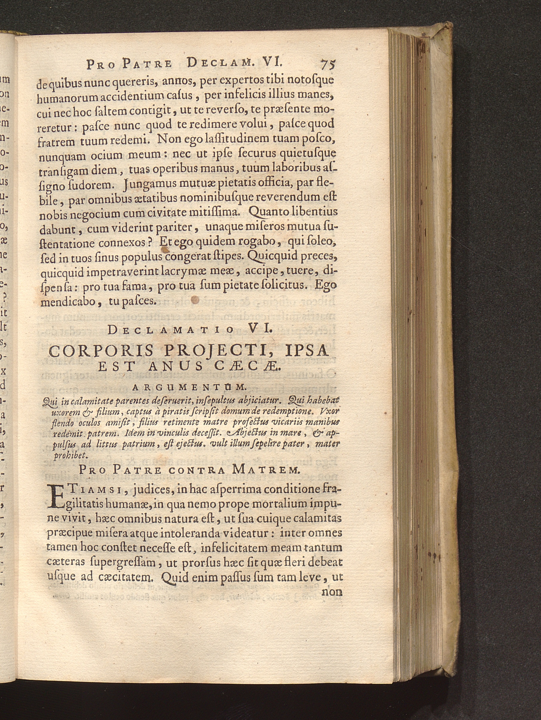 VI. Corporis projecti, seu Anus cacae. Pro patre contra matrem.