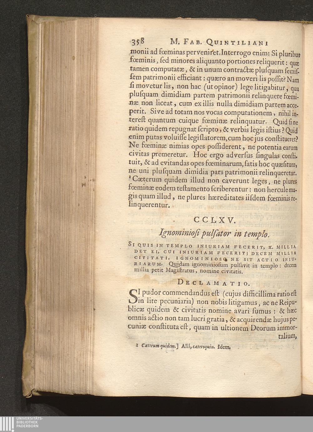 Tomus II (1665) M. Fab. Quintiliani Declamationes Undeviginti. M. Fabii Avi Et Calpurnii Flacci Declamationes. Auctoris Incerti Dialogus De causis corruptae Eloquentiae : Cvm Variorum Notis