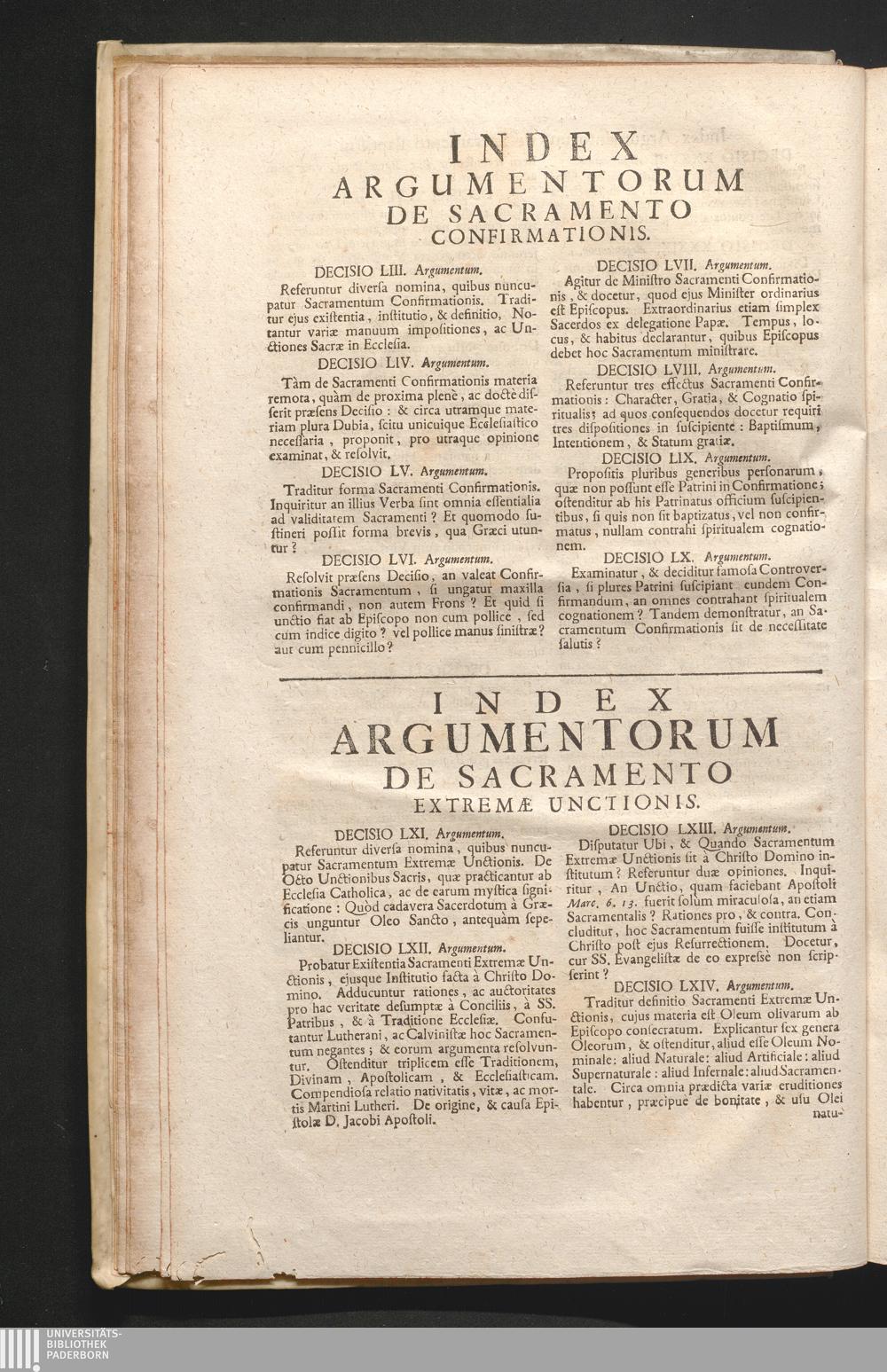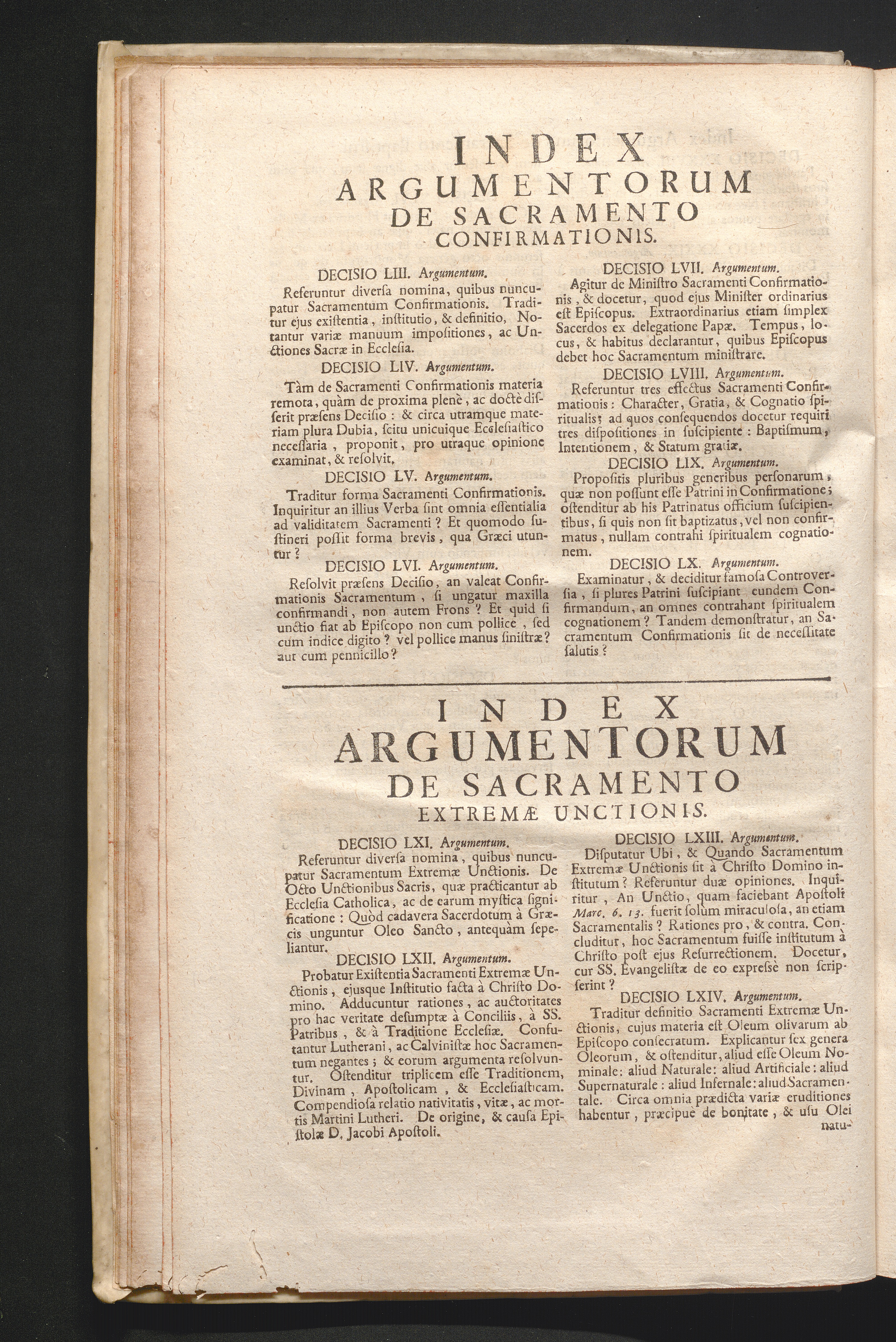 1,1 (1730) De Sacramentis In Genere Ac De Sacramentalibus Nec Non De Sacramentis Baptismi, Confirmationis, atque Extremæ Unctionis Decisiones / Auctore Joanne Clericato Præposito Patavino Juris Utriusque Doctore Olim in Curia Episcopali Patavina Advocato, & Promotore Fiscali, deinde Auditore, ac demùm sub Regimine Eminentissimi, ac Reverentissimi S.M. Gregorii Card. Barbadici Episcopo Patavini Vicario Generali