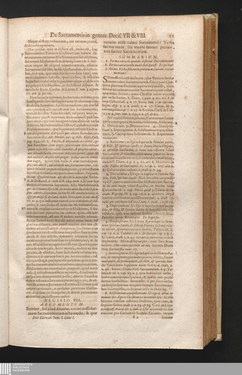 1,1 (1730) De Sacramentis In Genere Ac De Sacramentalibus Nec Non De Sacramentis Baptismi, Confirmationis, atque Extremæ Unctionis Decisiones / Auctore Joanne Clericato Præposito Patavino Juris Utriusque Doctore Olim in Curia Episcopali Patavina Advocato, & Promotore Fiscali, deinde Auditore, ac demùm sub Regimine Eminentissimi, ac Reverentissimi S.M. Gregorii Card. Barbadici Episcopo Patavini Vicario Generali
