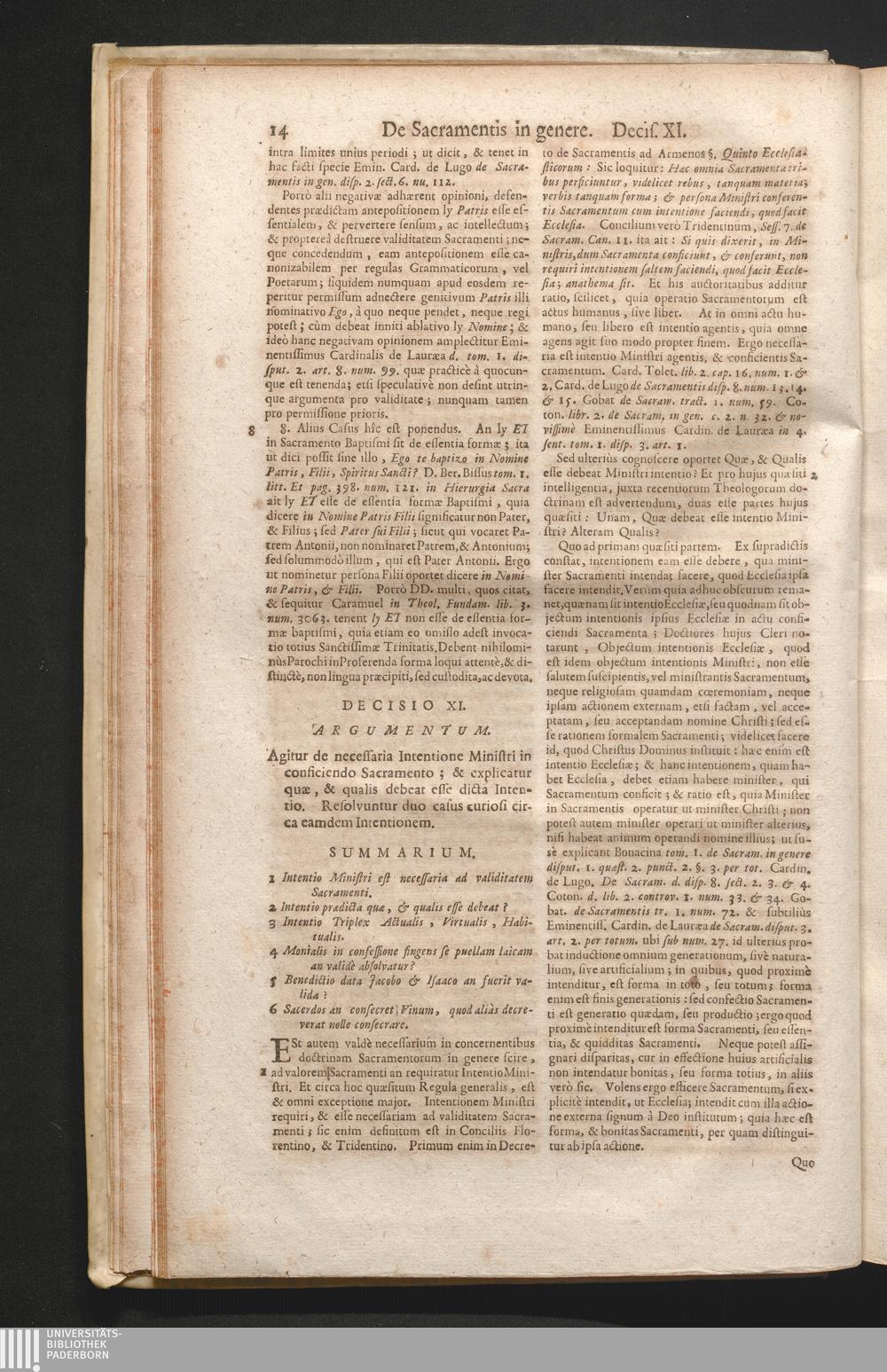 1,1 (1730) De Sacramentis In Genere Ac De Sacramentalibus Nec Non De Sacramentis Baptismi, Confirmationis, atque Extremæ Unctionis Decisiones / Auctore Joanne Clericato Præposito Patavino Juris Utriusque Doctore Olim in Curia Episcopali Patavina Advocato, & Promotore Fiscali, deinde Auditore, ac demùm sub Regimine Eminentissimi, ac Reverentissimi S.M. Gregorii Card. Barbadici Episcopo Patavini Vicario Generali