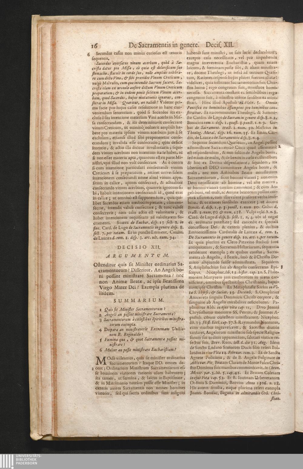 1,1 (1730) De Sacramentis In Genere Ac De Sacramentalibus Nec Non De Sacramentis Baptismi, Confirmationis, atque Extremæ Unctionis Decisiones / Auctore Joanne Clericato Præposito Patavino Juris Utriusque Doctore Olim in Curia Episcopali Patavina Advocato, & Promotore Fiscali, deinde Auditore, ac demùm sub Regimine Eminentissimi, ac Reverentissimi S.M. Gregorii Card. Barbadici Episcopo Patavini Vicario Generali