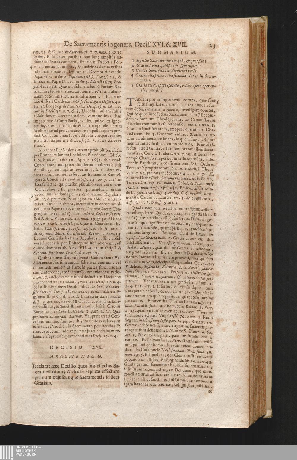 1,1 (1730) De Sacramentis In Genere Ac De Sacramentalibus Nec Non De Sacramentis Baptismi, Confirmationis, atque Extremæ Unctionis Decisiones / Auctore Joanne Clericato Præposito Patavino Juris Utriusque Doctore Olim in Curia Episcopali Patavina Advocato, & Promotore Fiscali, deinde Auditore, ac demùm sub Regimine Eminentissimi, ac Reverentissimi S.M. Gregorii Card. Barbadici Episcopo Patavini Vicario Generali