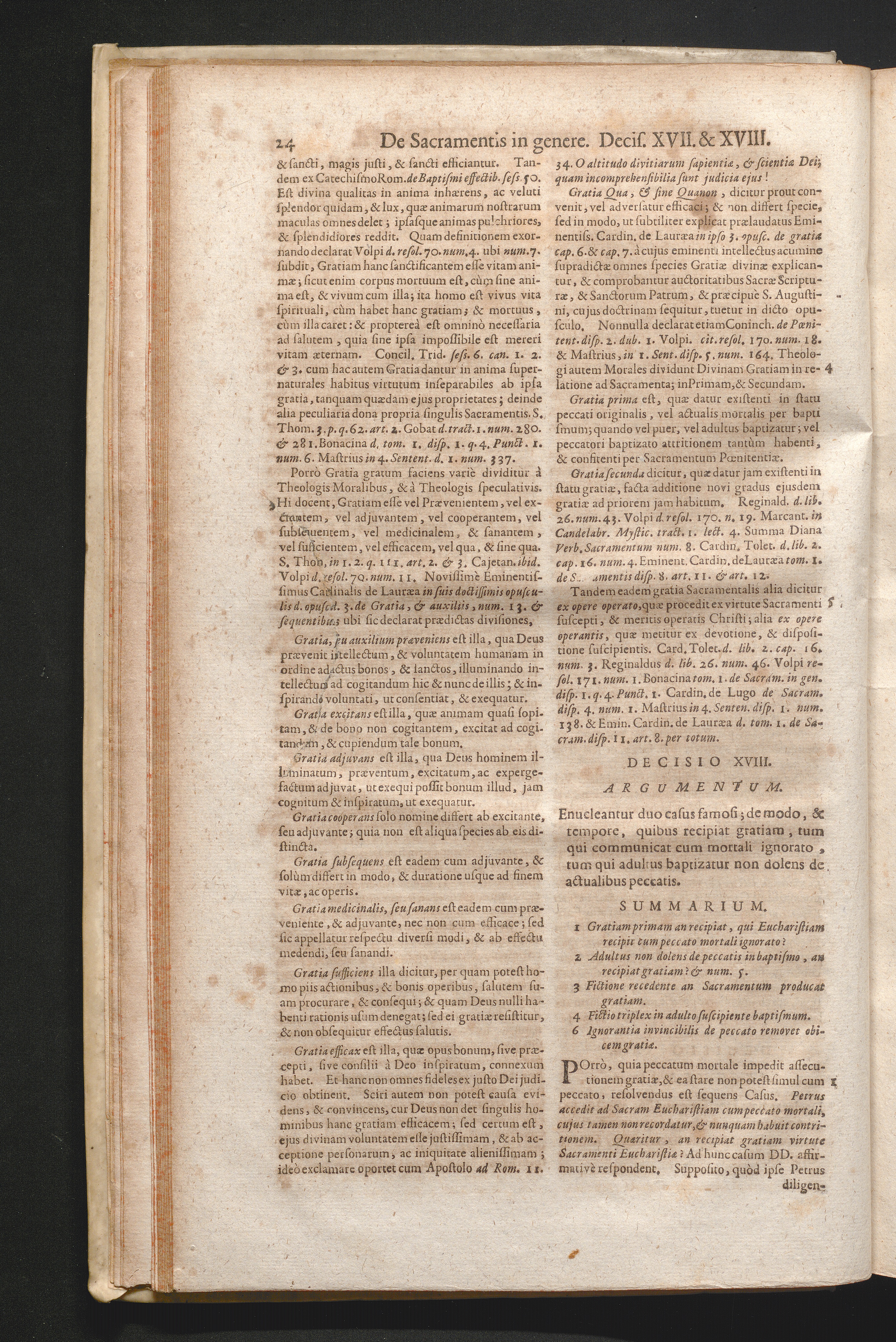1,1 (1730) De Sacramentis In Genere Ac De Sacramentalibus Nec Non De Sacramentis Baptismi, Confirmationis, atque Extremæ Unctionis Decisiones / Auctore Joanne Clericato Præposito Patavino Juris Utriusque Doctore Olim in Curia Episcopali Patavina Advocato, & Promotore Fiscali, deinde Auditore, ac demùm sub Regimine Eminentissimi, ac Reverentissimi S.M. Gregorii Card. Barbadici Episcopo Patavini Vicario Generali