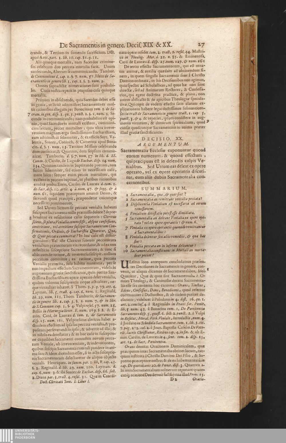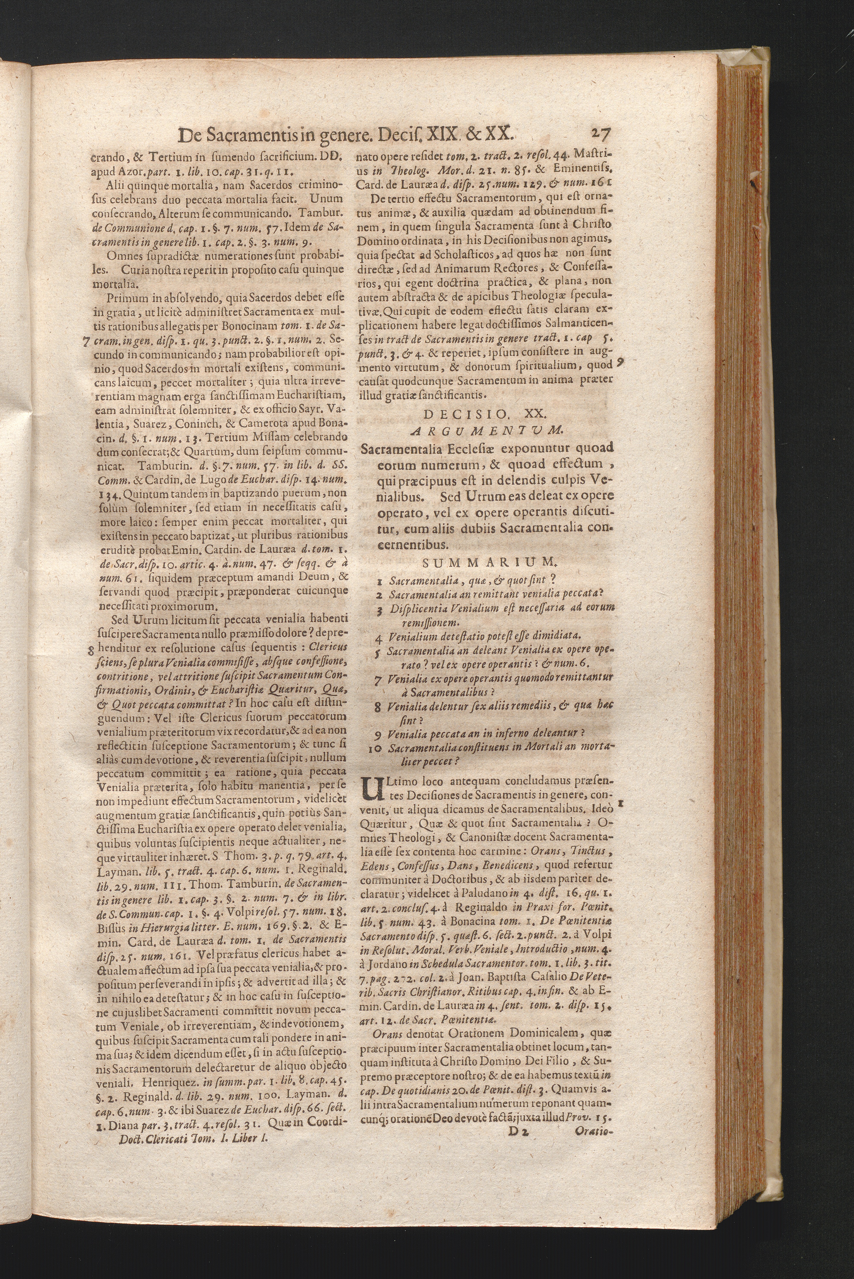 1,1 (1730) De Sacramentis In Genere Ac De Sacramentalibus Nec Non De Sacramentis Baptismi, Confirmationis, atque Extremæ Unctionis Decisiones / Auctore Joanne Clericato Præposito Patavino Juris Utriusque Doctore Olim in Curia Episcopali Patavina Advocato, & Promotore Fiscali, deinde Auditore, ac demùm sub Regimine Eminentissimi, ac Reverentissimi S.M. Gregorii Card. Barbadici Episcopo Patavini Vicario Generali