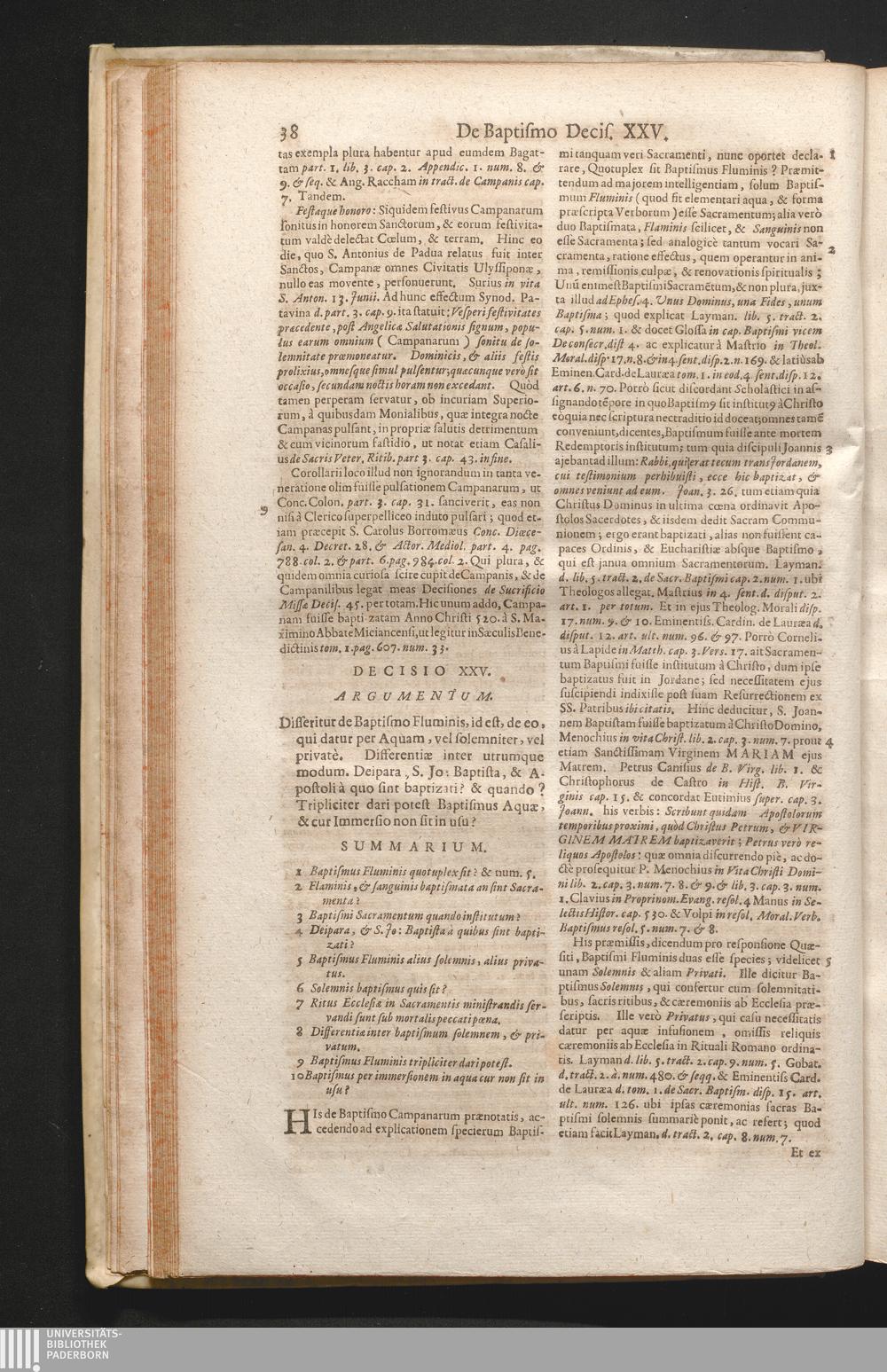 1,1 (1730) De Sacramentis In Genere Ac De Sacramentalibus Nec Non De Sacramentis Baptismi, Confirmationis, atque Extremæ Unctionis Decisiones / Auctore Joanne Clericato Præposito Patavino Juris Utriusque Doctore Olim in Curia Episcopali Patavina Advocato, & Promotore Fiscali, deinde Auditore, ac demùm sub Regimine Eminentissimi, ac Reverentissimi S.M. Gregorii Card. Barbadici Episcopo Patavini Vicario Generali