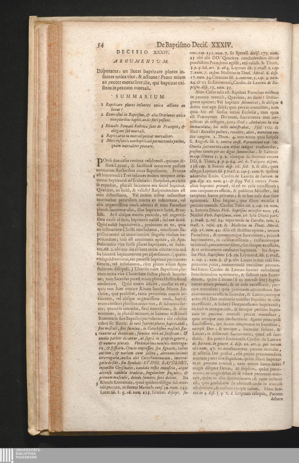 1,1 (1730) De Sacramentis In Genere Ac De Sacramentalibus Nec Non De Sacramentis Baptismi, Confirmationis, atque Extremæ Unctionis Decisiones / Auctore Joanne Clericato Præposito Patavino Juris Utriusque Doctore Olim in Curia Episcopali Patavina Advocato, & Promotore Fiscali, deinde Auditore, ac demùm sub Regimine Eminentissimi, ac Reverentissimi S.M. Gregorii Card. Barbadici Episcopo Patavini Vicario Generali