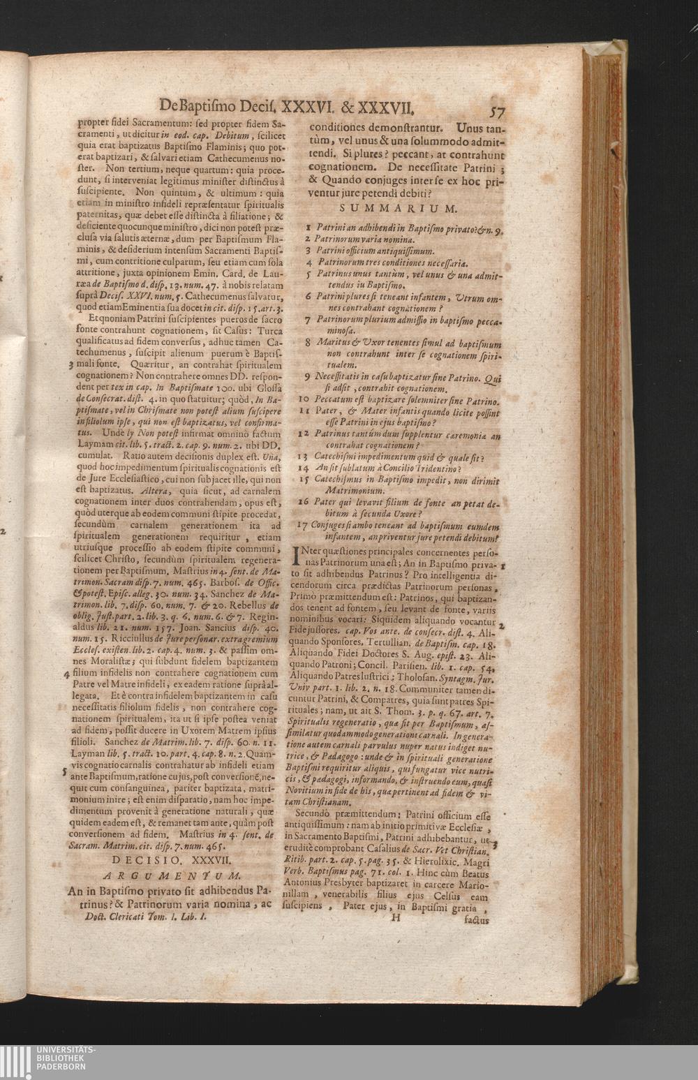 1,1 (1730) De Sacramentis In Genere Ac De Sacramentalibus Nec Non De Sacramentis Baptismi, Confirmationis, atque Extremæ Unctionis Decisiones / Auctore Joanne Clericato Præposito Patavino Juris Utriusque Doctore Olim in Curia Episcopali Patavina Advocato, & Promotore Fiscali, deinde Auditore, ac demùm sub Regimine Eminentissimi, ac Reverentissimi S.M. Gregorii Card. Barbadici Episcopo Patavini Vicario Generali