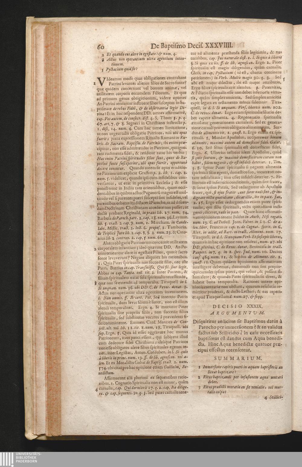 1,1 (1730) De Sacramentis In Genere Ac De Sacramentalibus Nec Non De Sacramentis Baptismi, Confirmationis, atque Extremæ Unctionis Decisiones / Auctore Joanne Clericato Præposito Patavino Juris Utriusque Doctore Olim in Curia Episcopali Patavina Advocato, & Promotore Fiscali, deinde Auditore, ac demùm sub Regimine Eminentissimi, ac Reverentissimi S.M. Gregorii Card. Barbadici Episcopo Patavini Vicario Generali