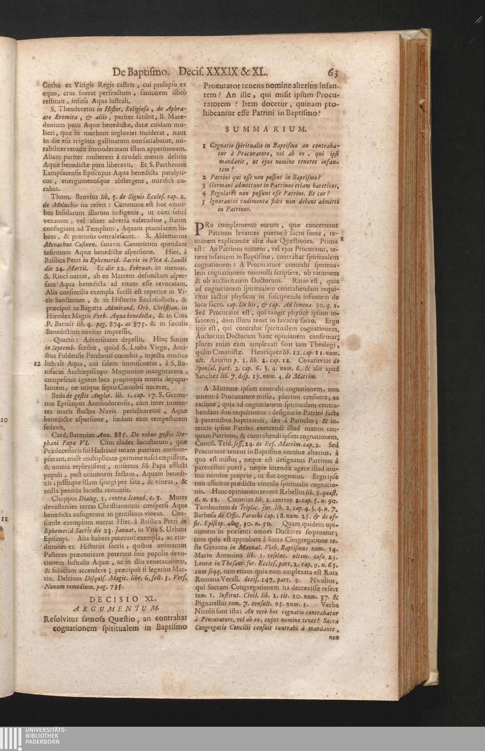 1,1 (1730) De Sacramentis In Genere Ac De Sacramentalibus Nec Non De Sacramentis Baptismi, Confirmationis, atque Extremæ Unctionis Decisiones / Auctore Joanne Clericato Præposito Patavino Juris Utriusque Doctore Olim in Curia Episcopali Patavina Advocato, & Promotore Fiscali, deinde Auditore, ac demùm sub Regimine Eminentissimi, ac Reverentissimi S.M. Gregorii Card. Barbadici Episcopo Patavini Vicario Generali