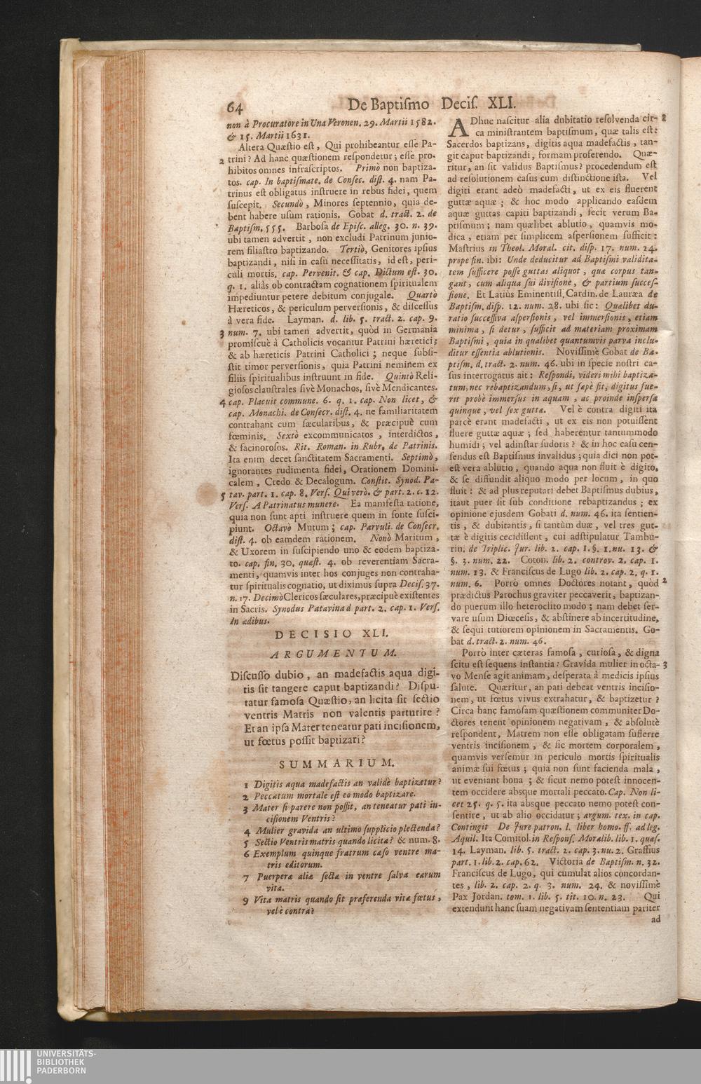 1,1 (1730) De Sacramentis In Genere Ac De Sacramentalibus Nec Non De Sacramentis Baptismi, Confirmationis, atque Extremæ Unctionis Decisiones / Auctore Joanne Clericato Præposito Patavino Juris Utriusque Doctore Olim in Curia Episcopali Patavina Advocato, & Promotore Fiscali, deinde Auditore, ac demùm sub Regimine Eminentissimi, ac Reverentissimi S.M. Gregorii Card. Barbadici Episcopo Patavini Vicario Generali