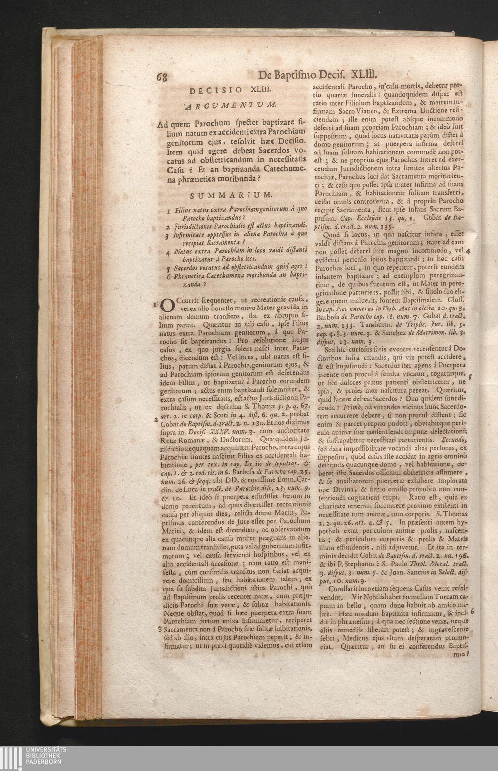 1,1 (1730) De Sacramentis In Genere Ac De Sacramentalibus Nec Non De Sacramentis Baptismi, Confirmationis, atque Extremæ Unctionis Decisiones / Auctore Joanne Clericato Præposito Patavino Juris Utriusque Doctore Olim in Curia Episcopali Patavina Advocato, & Promotore Fiscali, deinde Auditore, ac demùm sub Regimine Eminentissimi, ac Reverentissimi S.M. Gregorii Card. Barbadici Episcopo Patavini Vicario Generali