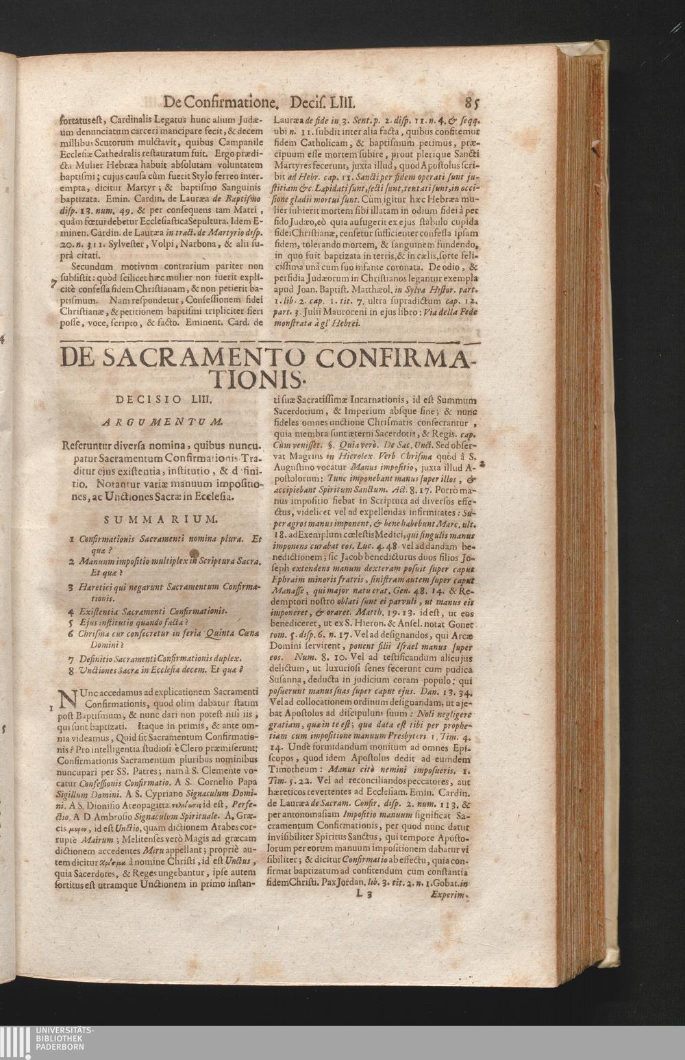 1,1 (1730) De Sacramentis In Genere Ac De Sacramentalibus Nec Non De Sacramentis Baptismi, Confirmationis, atque Extremæ Unctionis Decisiones / Auctore Joanne Clericato Præposito Patavino Juris Utriusque Doctore Olim in Curia Episcopali Patavina Advocato, & Promotore Fiscali, deinde Auditore, ac demùm sub Regimine Eminentissimi, ac Reverentissimi S.M. Gregorii Card. Barbadici Episcopo Patavini Vicario Generali