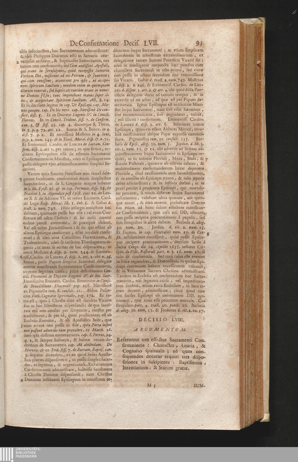1,1 (1730) De Sacramentis In Genere Ac De Sacramentalibus Nec Non De Sacramentis Baptismi, Confirmationis, atque Extremæ Unctionis Decisiones / Auctore Joanne Clericato Præposito Patavino Juris Utriusque Doctore Olim in Curia Episcopali Patavina Advocato, & Promotore Fiscali, deinde Auditore, ac demùm sub Regimine Eminentissimi, ac Reverentissimi S.M. Gregorii Card. Barbadici Episcopo Patavini Vicario Generali