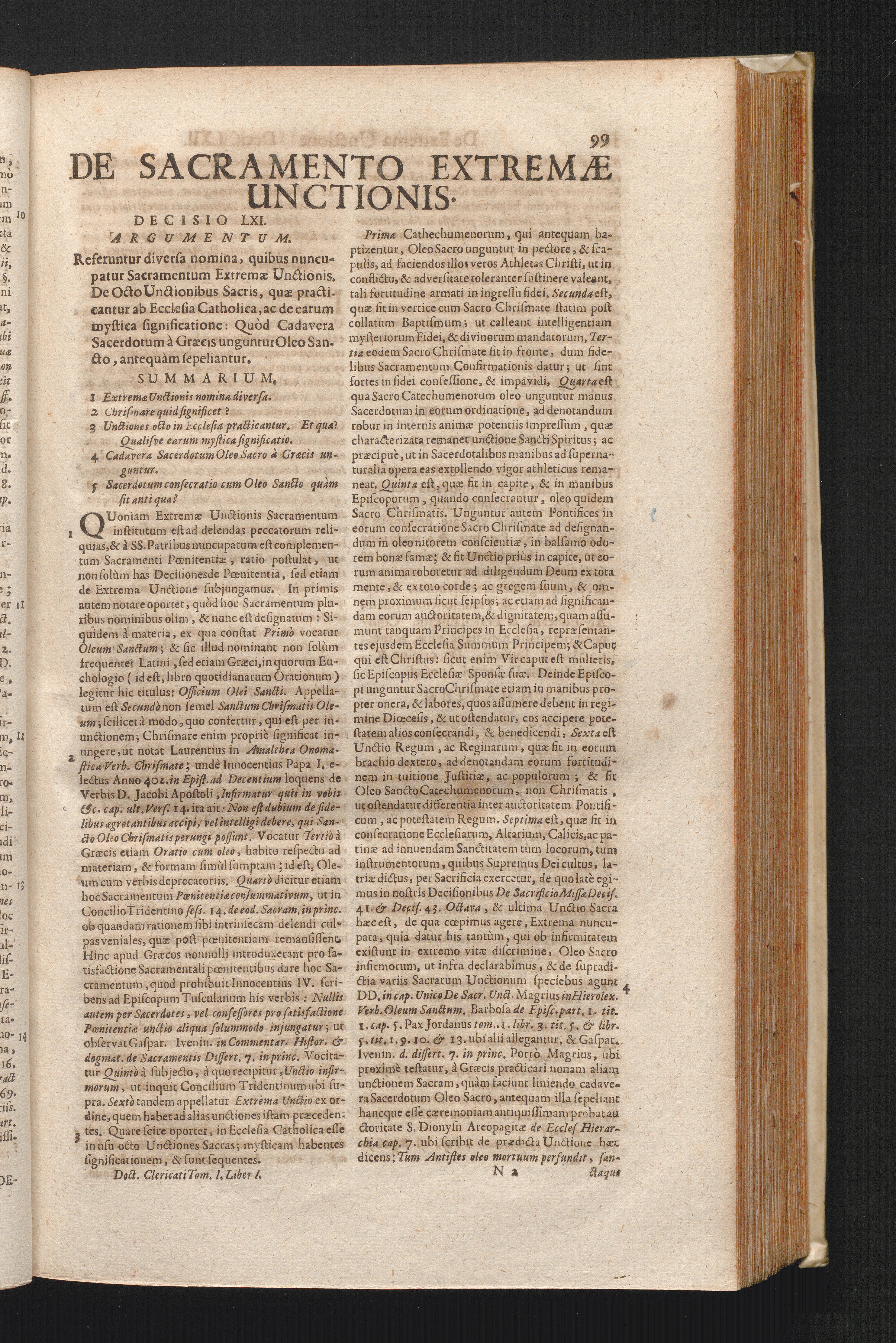 1,1 (1730) De Sacramentis In Genere Ac De Sacramentalibus Nec Non De Sacramentis Baptismi, Confirmationis, atque Extremæ Unctionis Decisiones / Auctore Joanne Clericato Præposito Patavino Juris Utriusque Doctore Olim in Curia Episcopali Patavina Advocato, & Promotore Fiscali, deinde Auditore, ac demùm sub Regimine Eminentissimi, ac Reverentissimi S.M. Gregorii Card. Barbadici Episcopo Patavini Vicario Generali
