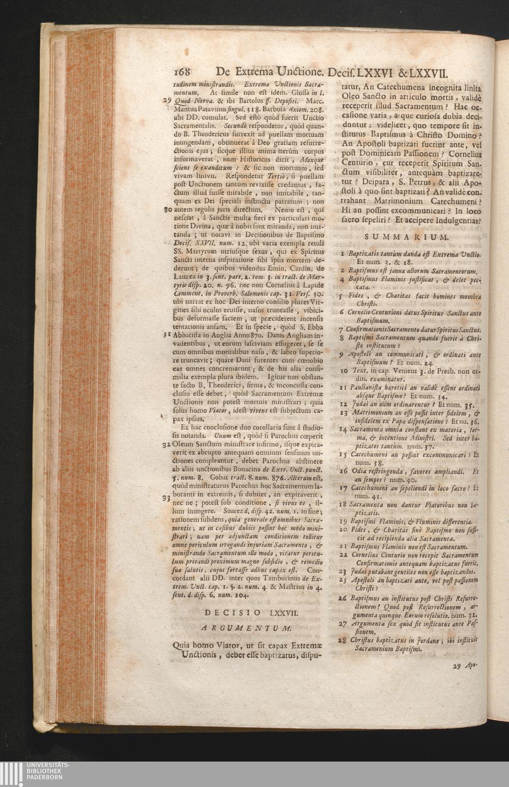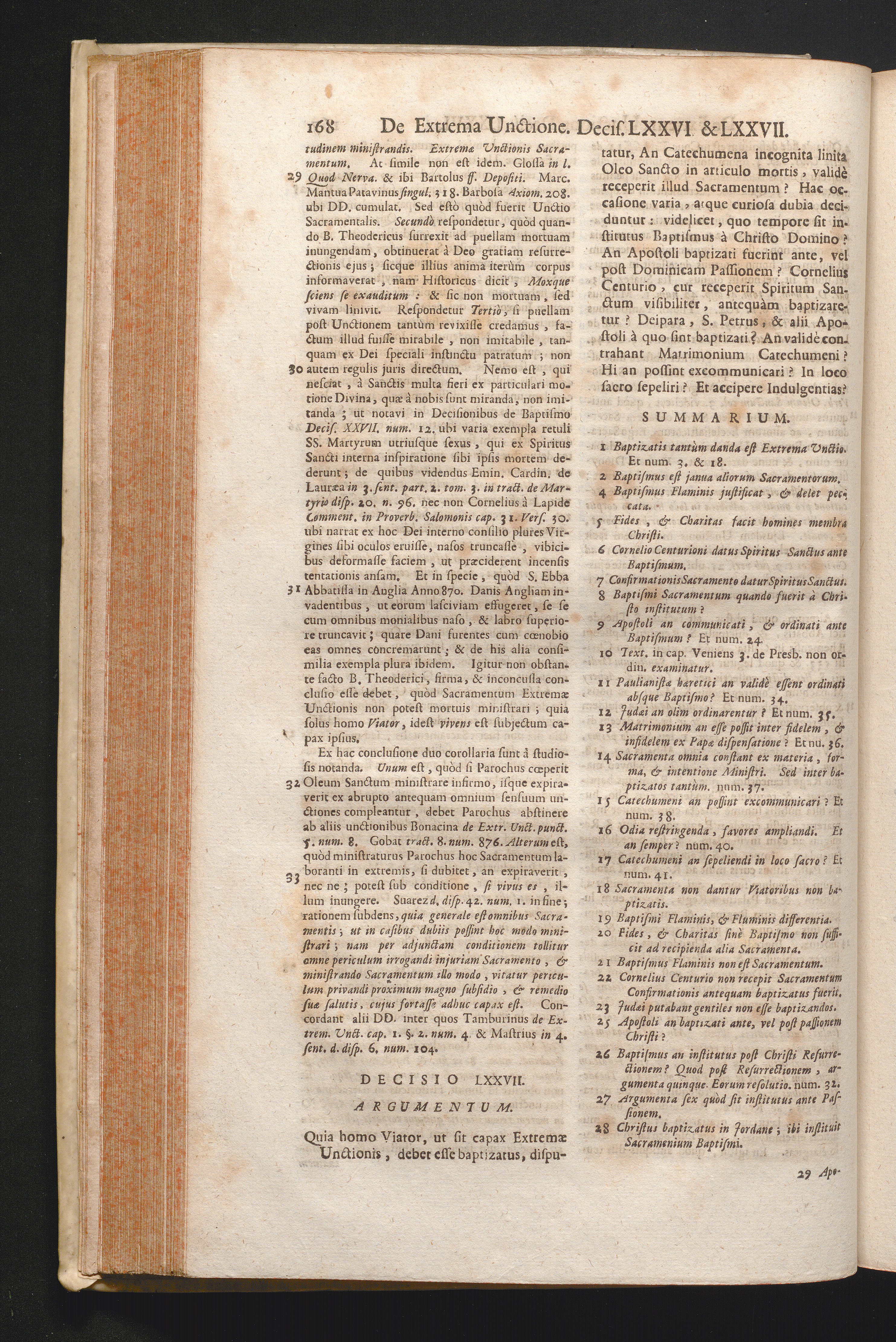 1,1 (1730) De Sacramentis In Genere Ac De Sacramentalibus Nec Non De Sacramentis Baptismi, Confirmationis, atque Extremæ Unctionis Decisiones / Auctore Joanne Clericato Præposito Patavino Juris Utriusque Doctore Olim in Curia Episcopali Patavina Advocato, & Promotore Fiscali, deinde Auditore, ac demùm sub Regimine Eminentissimi, ac Reverentissimi S.M. Gregorii Card. Barbadici Episcopo Patavini Vicario Generali