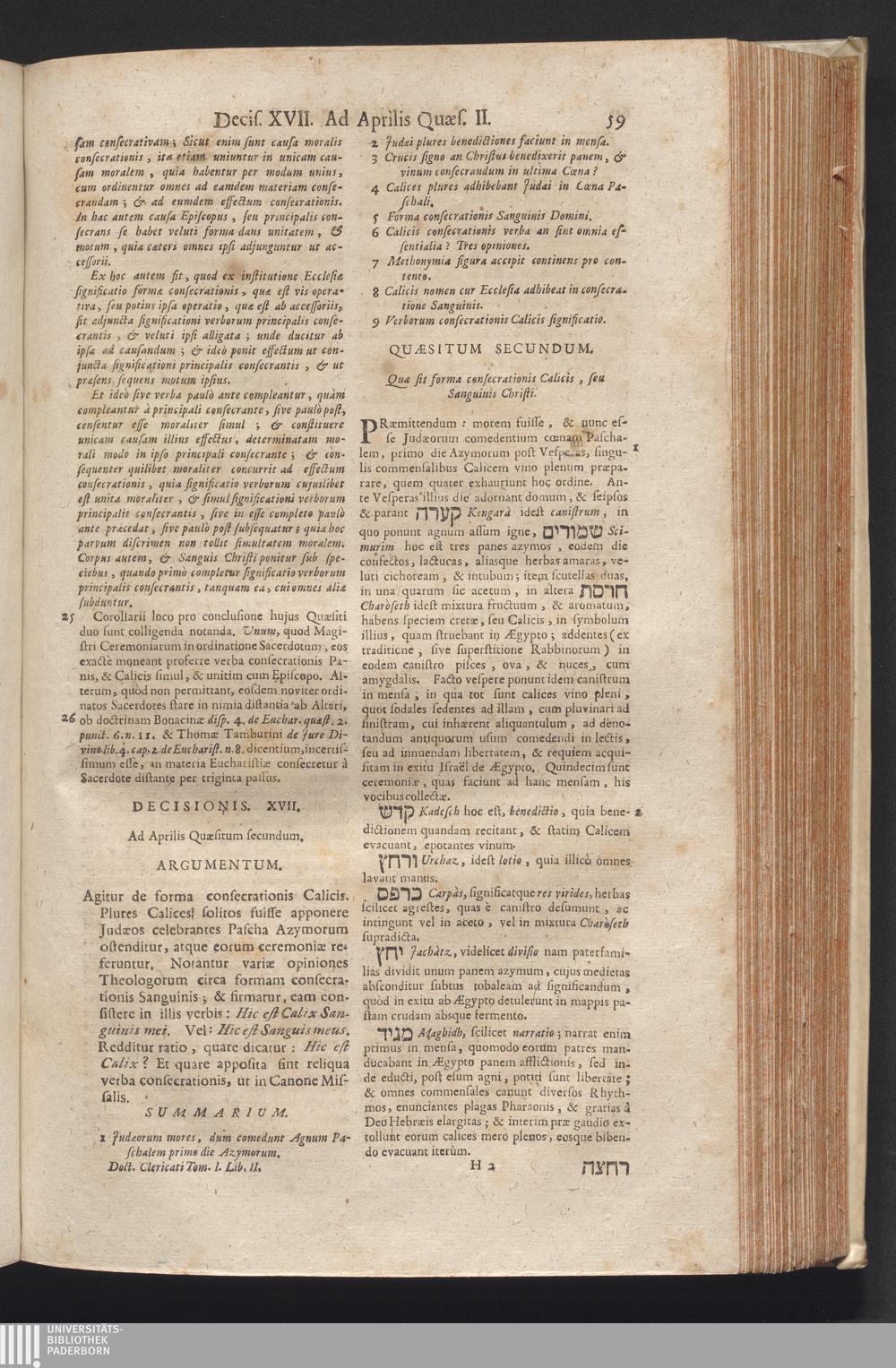 1,2 (1730) De Venerabili Eucharistiæ Sacramento Decisiones Theologico-Legales / Auctore Joanne Clericato Præposito Patavino Juris Utriusque Doctore Olim in Curia Episcopali Patavina Advocato, & Promotore Fiscali, deinde Auditore, ac demùm sub Regimine Eminentissimi, ac Reverentissimi S.M. Gregorii Card. Barbadici Episcopo Patavini Vicario Generali
