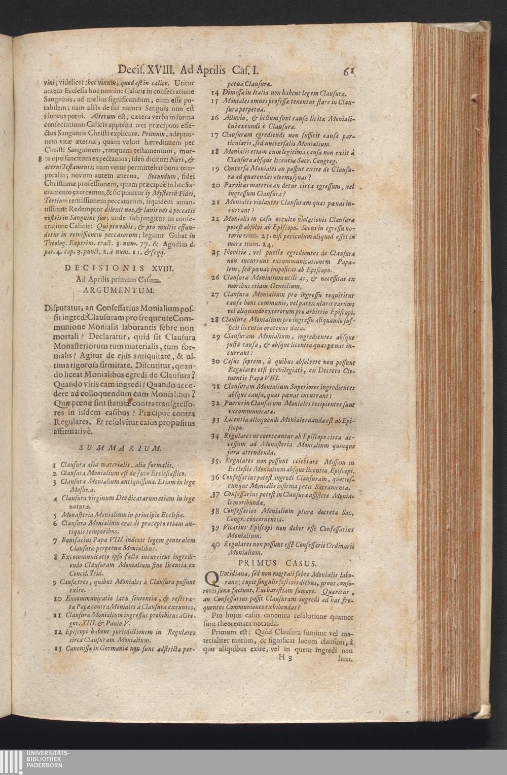 1,2 (1730) De Venerabili Eucharistiæ Sacramento Decisiones Theologico-Legales / Auctore Joanne Clericato Præposito Patavino Juris Utriusque Doctore Olim in Curia Episcopali Patavina Advocato, & Promotore Fiscali, deinde Auditore, ac demùm sub Regimine Eminentissimi, ac Reverentissimi S.M. Gregorii Card. Barbadici Episcopo Patavini Vicario Generali