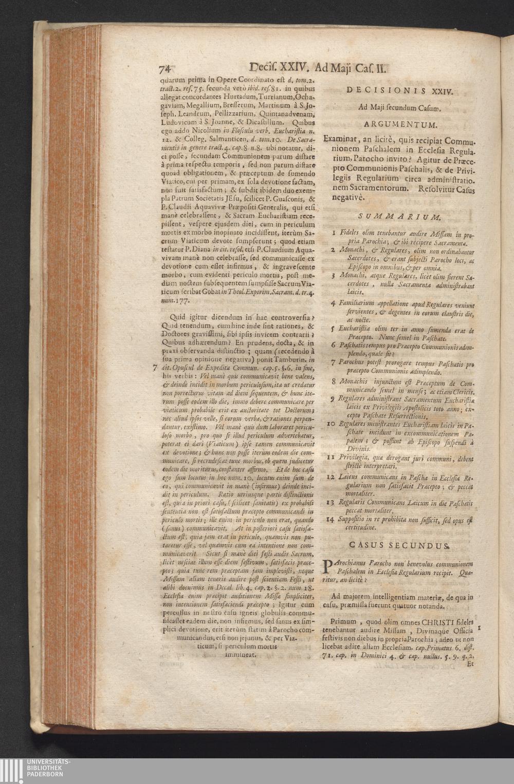 1,2 (1730) De Venerabili Eucharistiæ Sacramento Decisiones Theologico-Legales / Auctore Joanne Clericato Præposito Patavino Juris Utriusque Doctore Olim in Curia Episcopali Patavina Advocato, & Promotore Fiscali, deinde Auditore, ac demùm sub Regimine Eminentissimi, ac Reverentissimi S.M. Gregorii Card. Barbadici Episcopo Patavini Vicario Generali